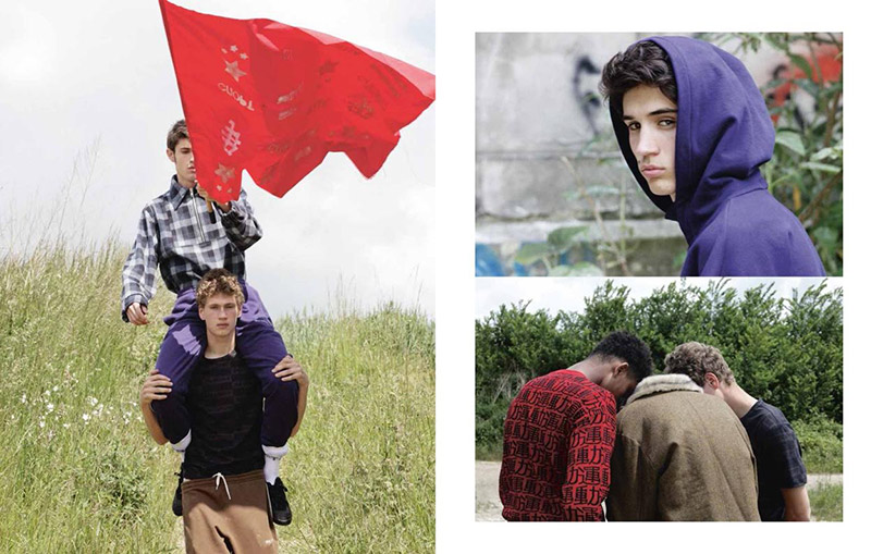 “Hugo V at Elite, Ilian and Nahuel at 16MEN photographed by Winter Vandenbrink and styled by Simon Pylyser with pieces from Gosha Rubchinskiy, for the latest issue of Boycott magazine.” – FY Magazine.es