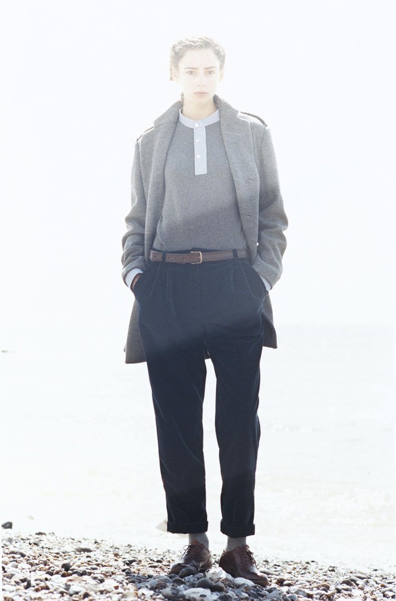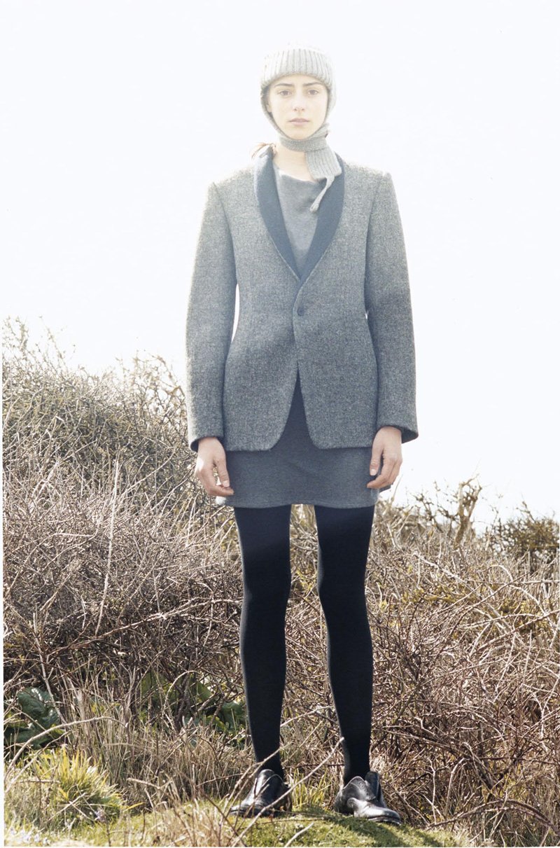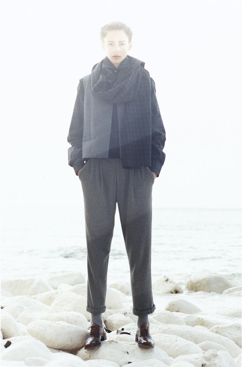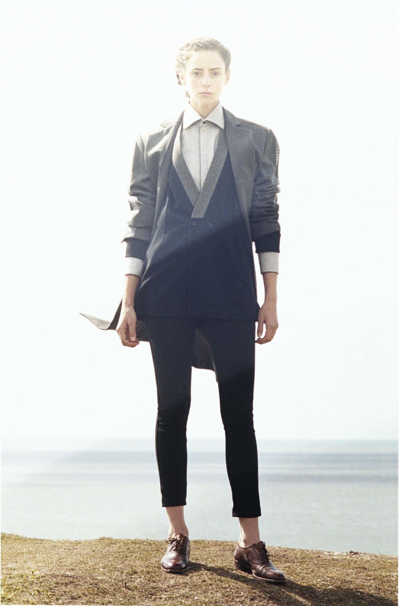 ‘Begging the mind to reconsider the practicality of unisex garments, 1205 designer Paula Gerbase showcases her sophomore collection with a female model. Working with hues of navy, gray and white, Gerbase crafts a charming collection of relaxed sophistication. From twinsets and boxy jackets to free-flowing trousers, 1205 approaches the fall season with a grace and poise that is timeless, yet ultimately modern. – courtesy of thefashionisto.com