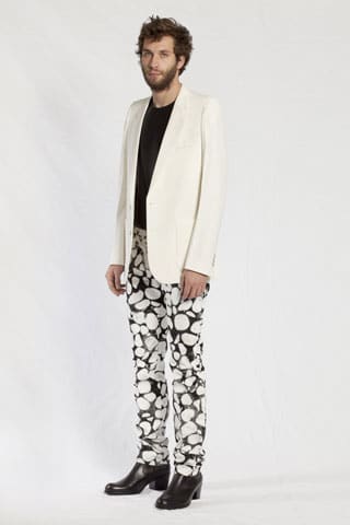 ‘The first Margiela ensemble consists of a “polka dot” shirt and a pair of striped trousers, both in…