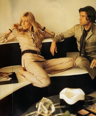 Model/Muse Betty Catroux along with interior desginger hubby Francois Catroux are photographed here in 1969 lounging at their…