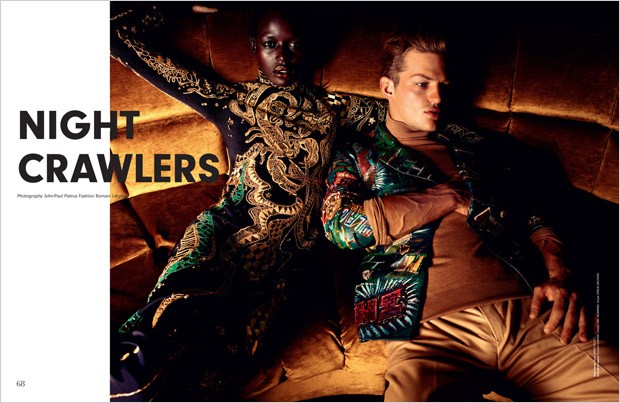 “Top models Sebastian Sauve and Ajak Deng team up with fashion photographer John-Paul Pietrus for Night Crawlers story…