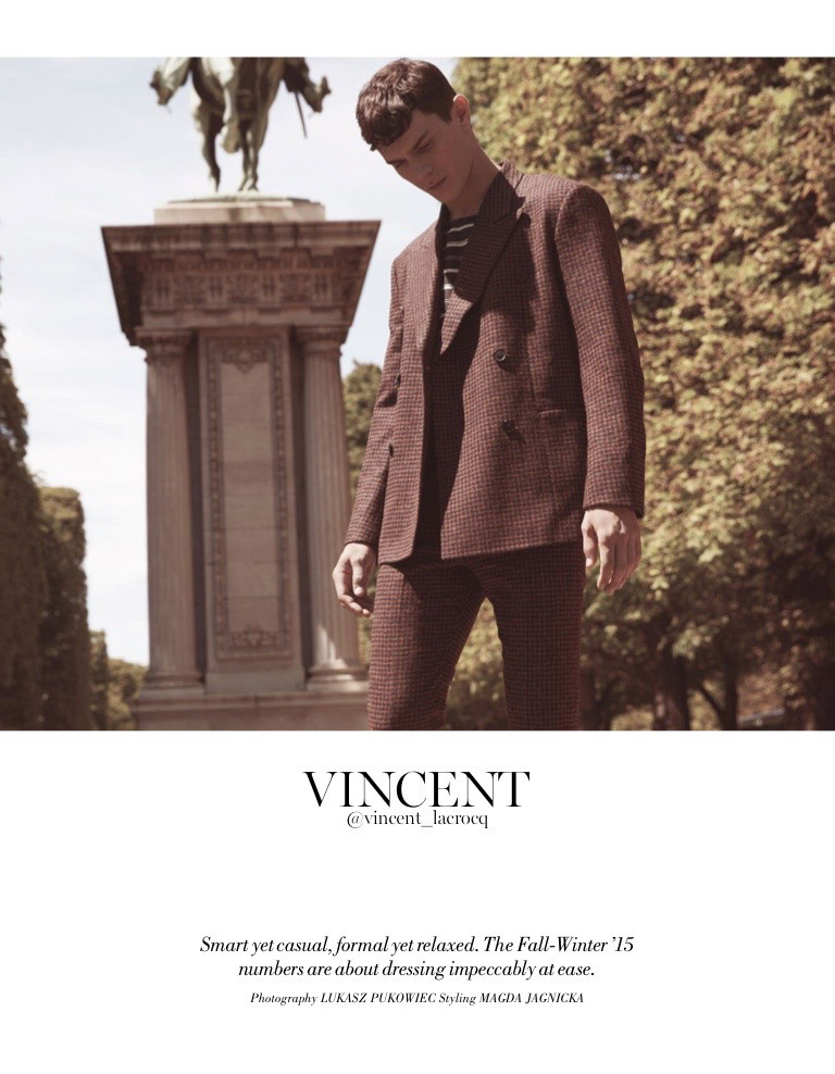 “Vincent LaCrocq captured by the lens of Lukasz Pukowiec and styled by Magda Jagnicka, for the Fall/Winter 2015…