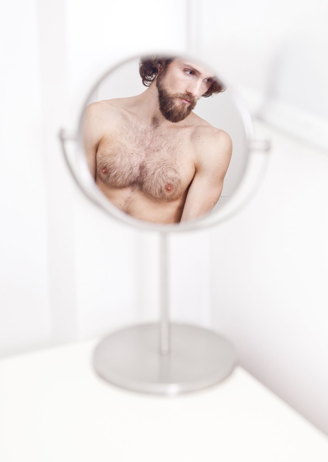 “British model Roy Brackpool at Established is photographed by Scallywag Fox; with hair and makeup by Becci Mapes.” – homotography.blogspot.com