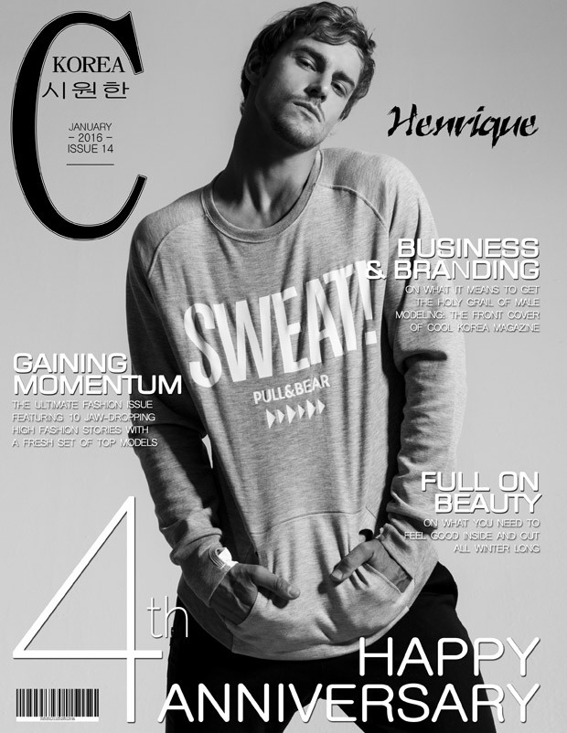 “Brazilian model Henrique Hansmann lands the cover story of Cool Korea‘s January 2016 edition captured by fashion photographer Daniel Piedrabuena…