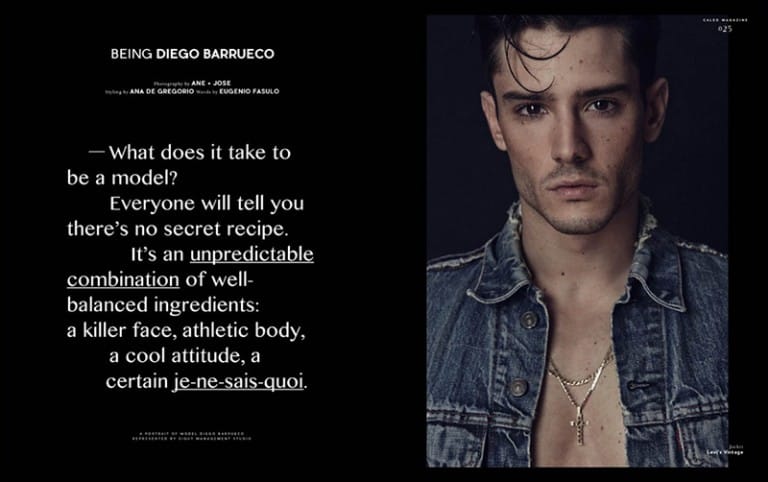 “Diego Barrueco photographed by Ane +Jose and styled by Ana de Gregorio, for the Summer 2016 issue of Caleo magazine.” – Fuckingyoung.es