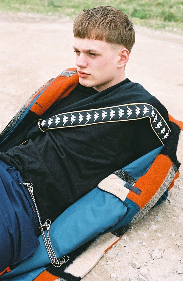 “Lorenzo Bigi photographed by Giorgia Fagà and styled by Giulia Antinori, Roberta Vitelli and Livia De Franco with pieces from Kappa, Plus Que Ma Vie, Gucci, adidas, Champion, Gosha Rubchinskiy, Nike…
