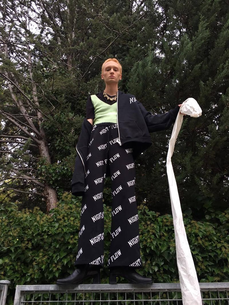 “Sweatshirt by Night Flow, boots by Chromosome Residence and sunglasses by Giantvintage Javier de la Blanca captured by Marcos Pena for Night Flow Korea…