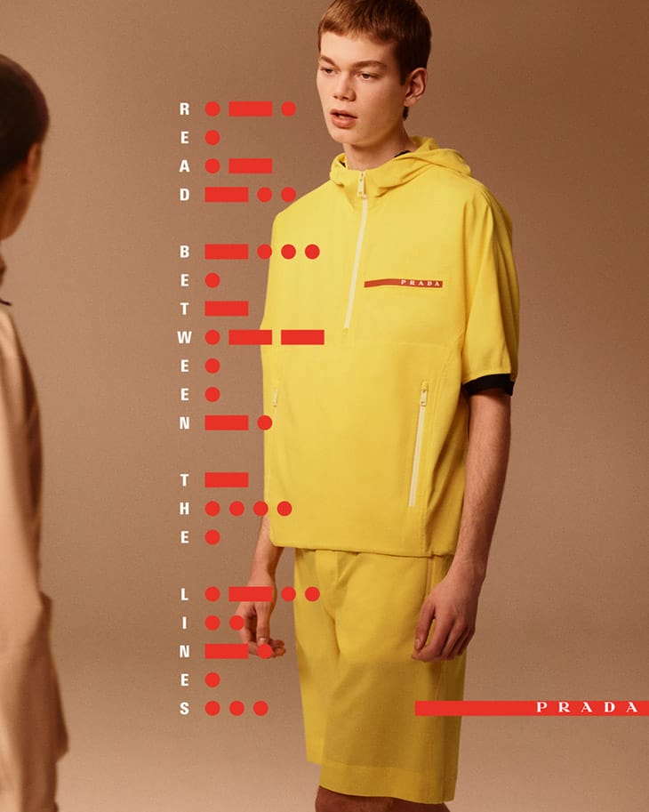 “Models Jacob Lepp and Jiao Tong team up with fashion photographer Timur Celikdag for Prada Linea Rossa‘s Spring Summer 2020 Morse Code campaign. Styling is work of Max Clark…