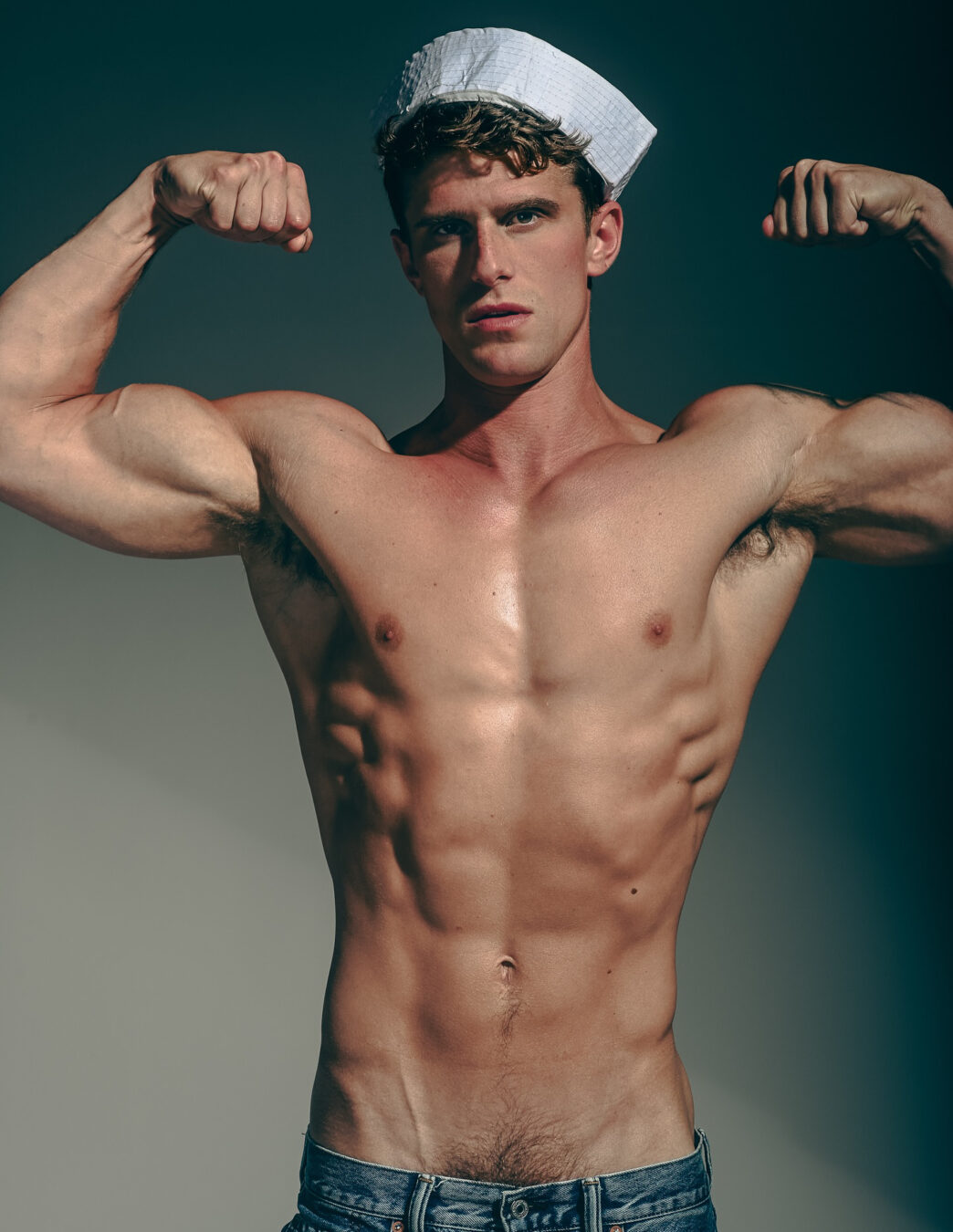 Matthew van de Sande, shot by Frank Louis in NYC, fronts the launch issue of his magazine Moments.