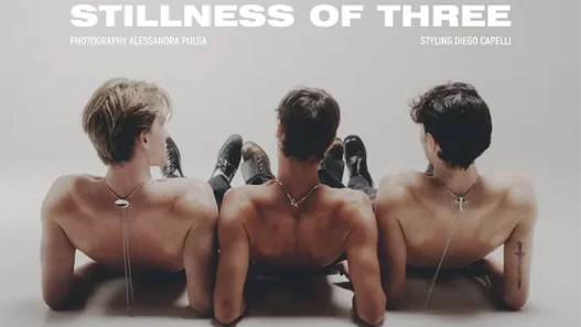 Alessandra Pulga’s “Stillness of Three” captures Giacomo Dottorini, Mathias Soum, and Jagger Sherman in contemplative style for MMSCENE.