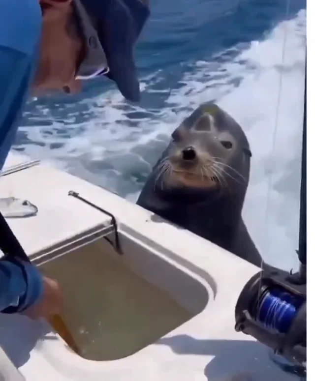 A surprising encounter on the open sea is going viral after a #seal climbed aboard a fishing boat and appeared to “demand” a bigger fish from the fishermen…