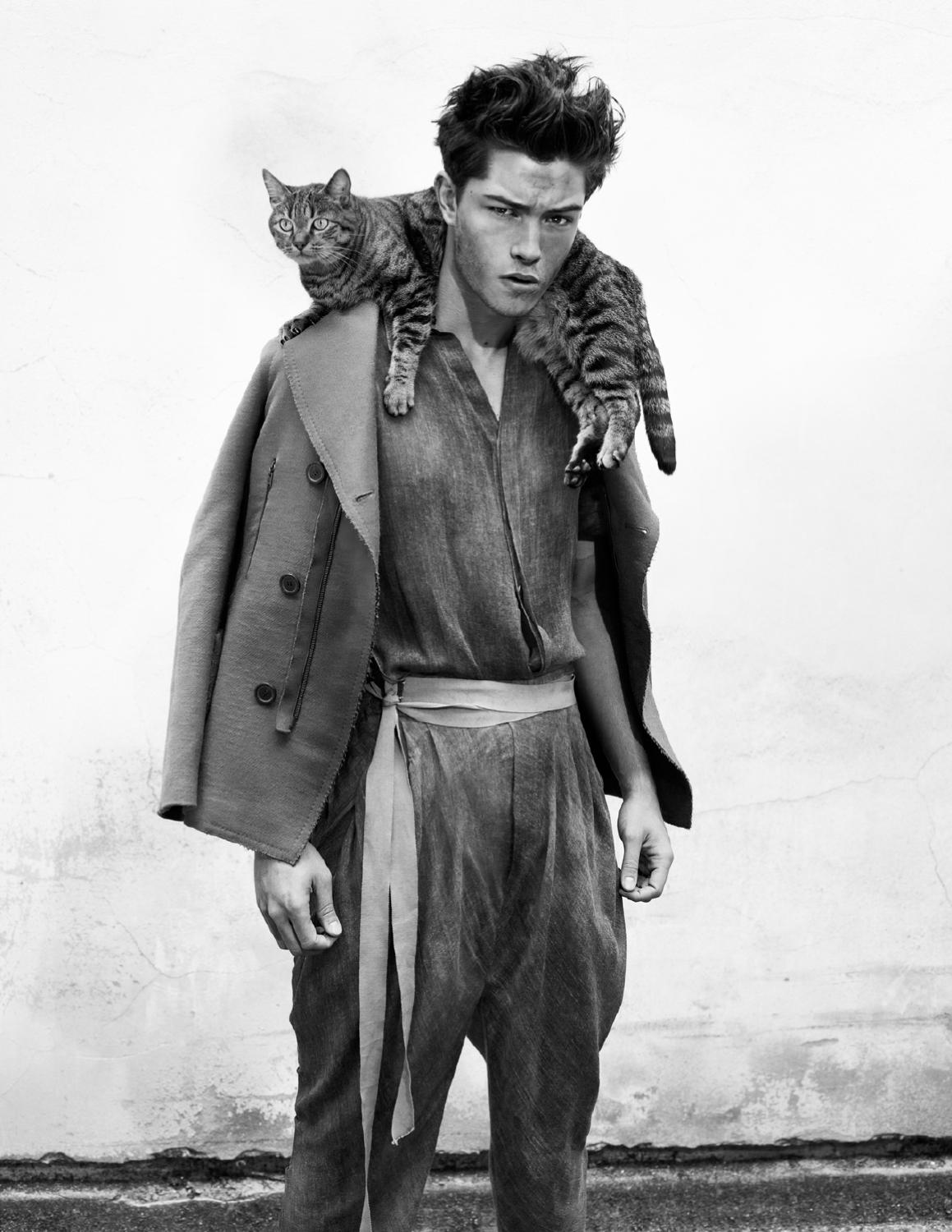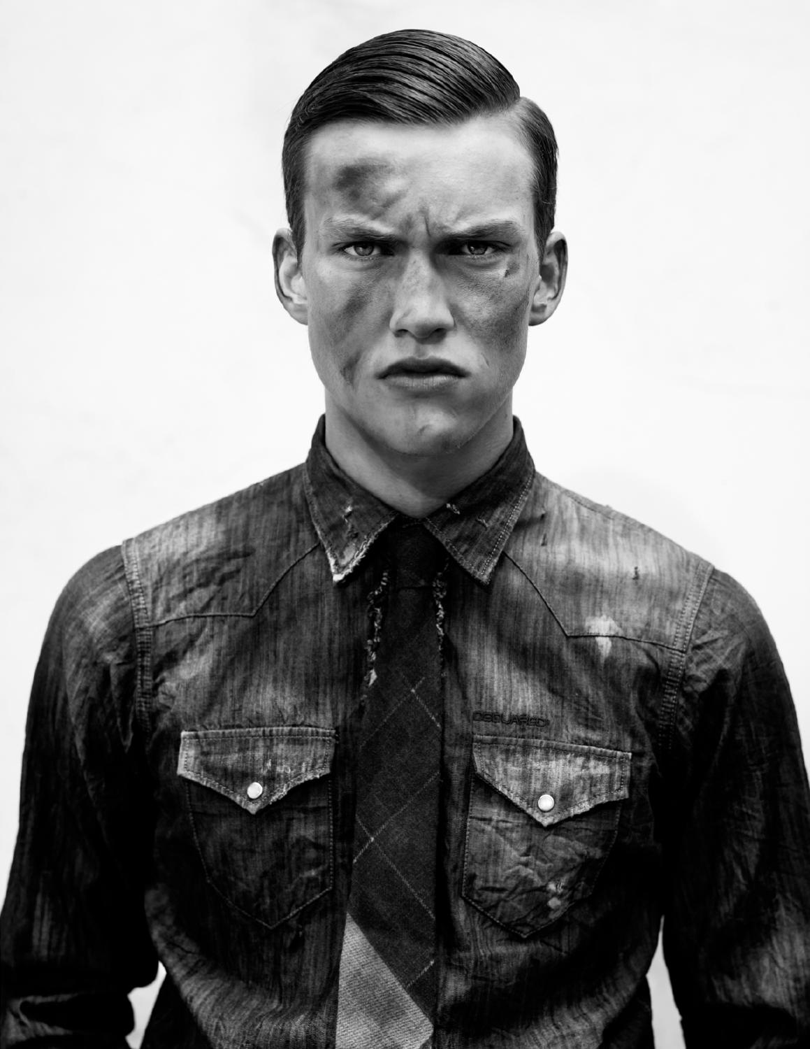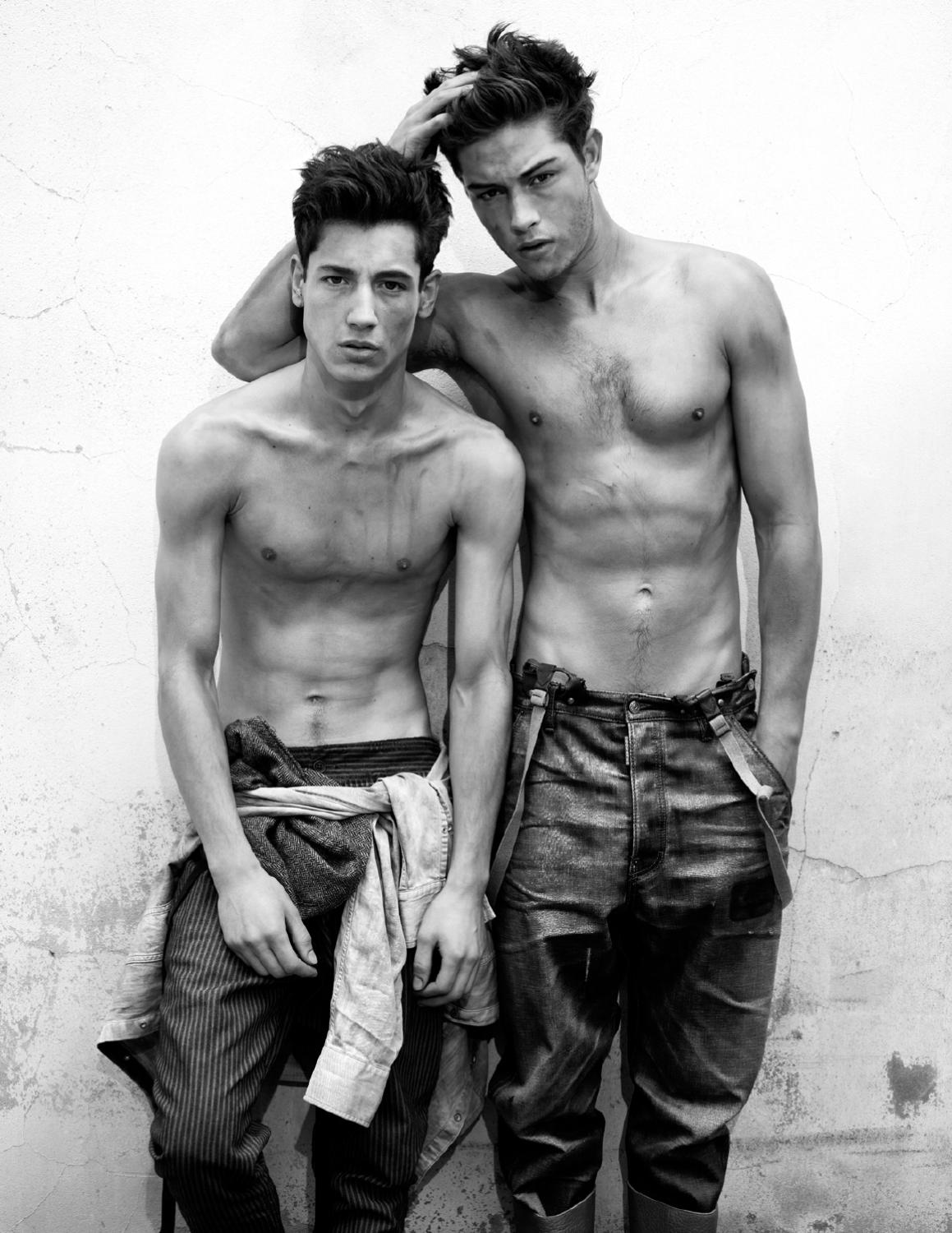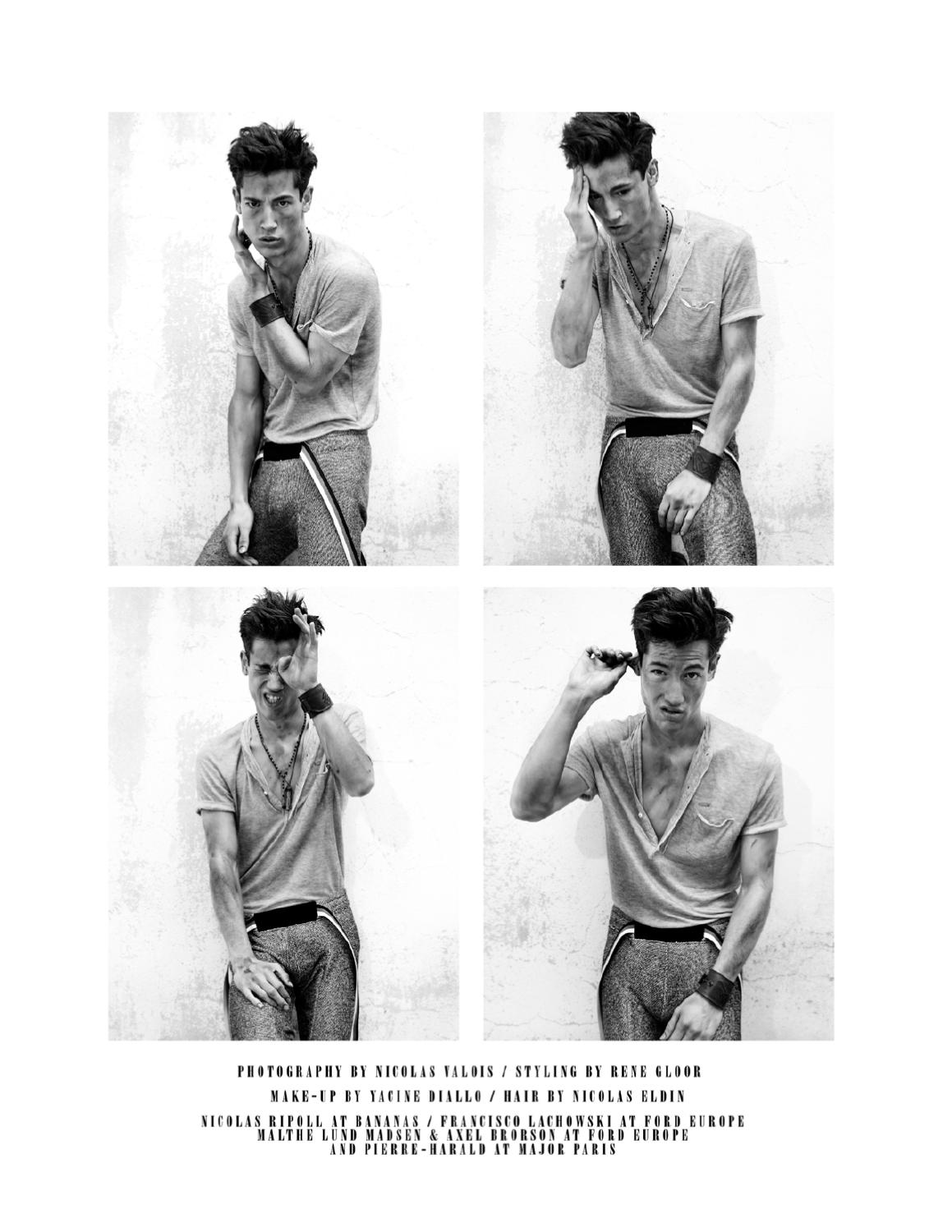 Nicolas Valois and Rene Gloor work together to bring the cover story for Carbon Copy’s ninth issue to fruition, with a cast that includes Francisco Lachowski, Nicolas Ripoll, Axel Brorson, Malthe Madsen and Pierre-Harald, it was sure to be a knockout. They model homely-inspired fashions from dirtied denim to loose and drape-y blousons. Courtesy of – hommemodel.blogspot.com