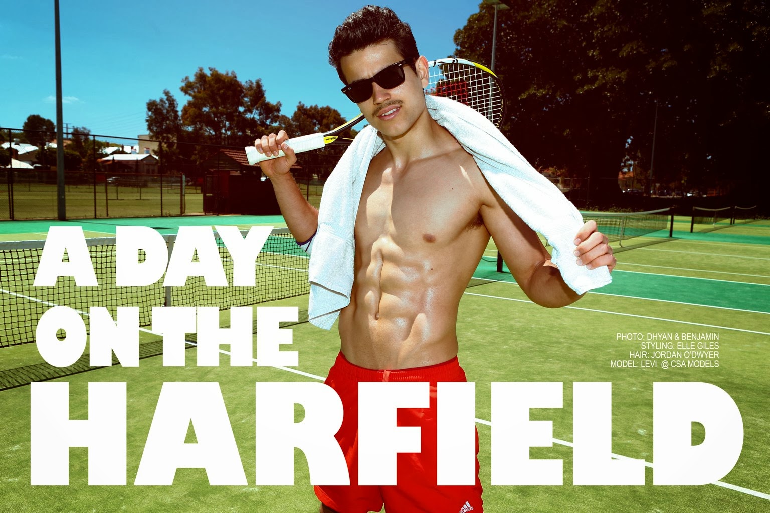 Levi Neufeld at CSA Models is photographed by Dhyan & Benjamin in the story ‘A Day on the Harfield’, with styling by Elle Giles and hair by Jordan O’Dwyer. Levi wears pieces from Adidas, Ralph Lauren, Rayban, Speedo, Calvin Klein, Slazenger, Converse, Tommy Hilfiger and Nike.