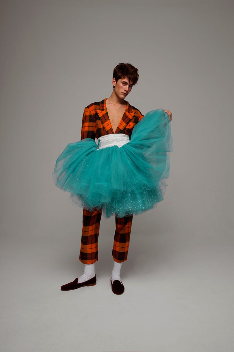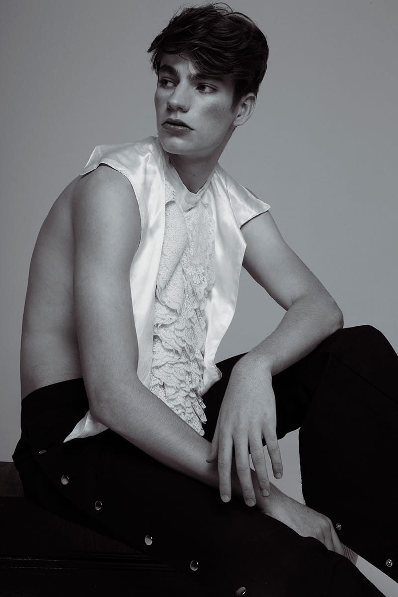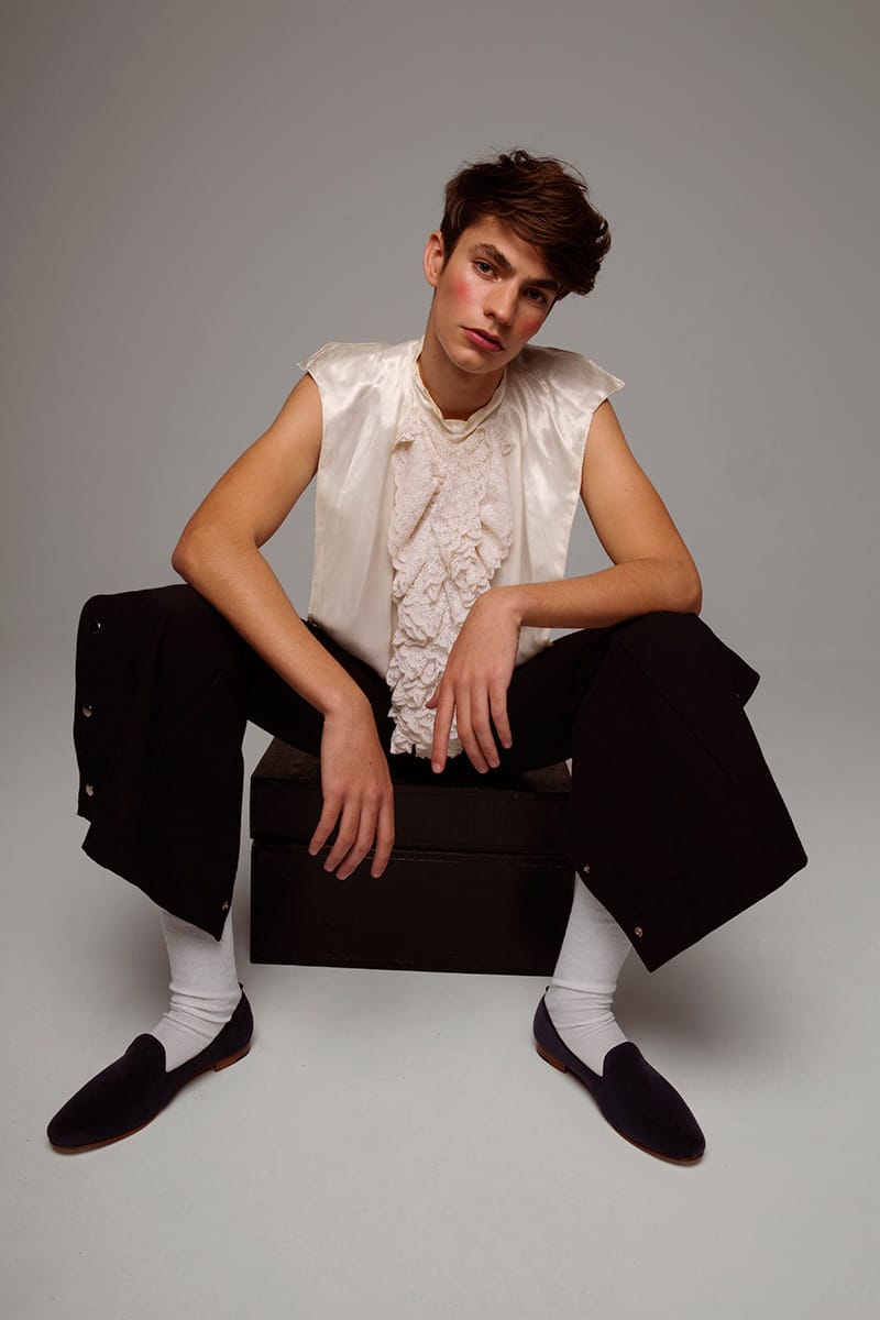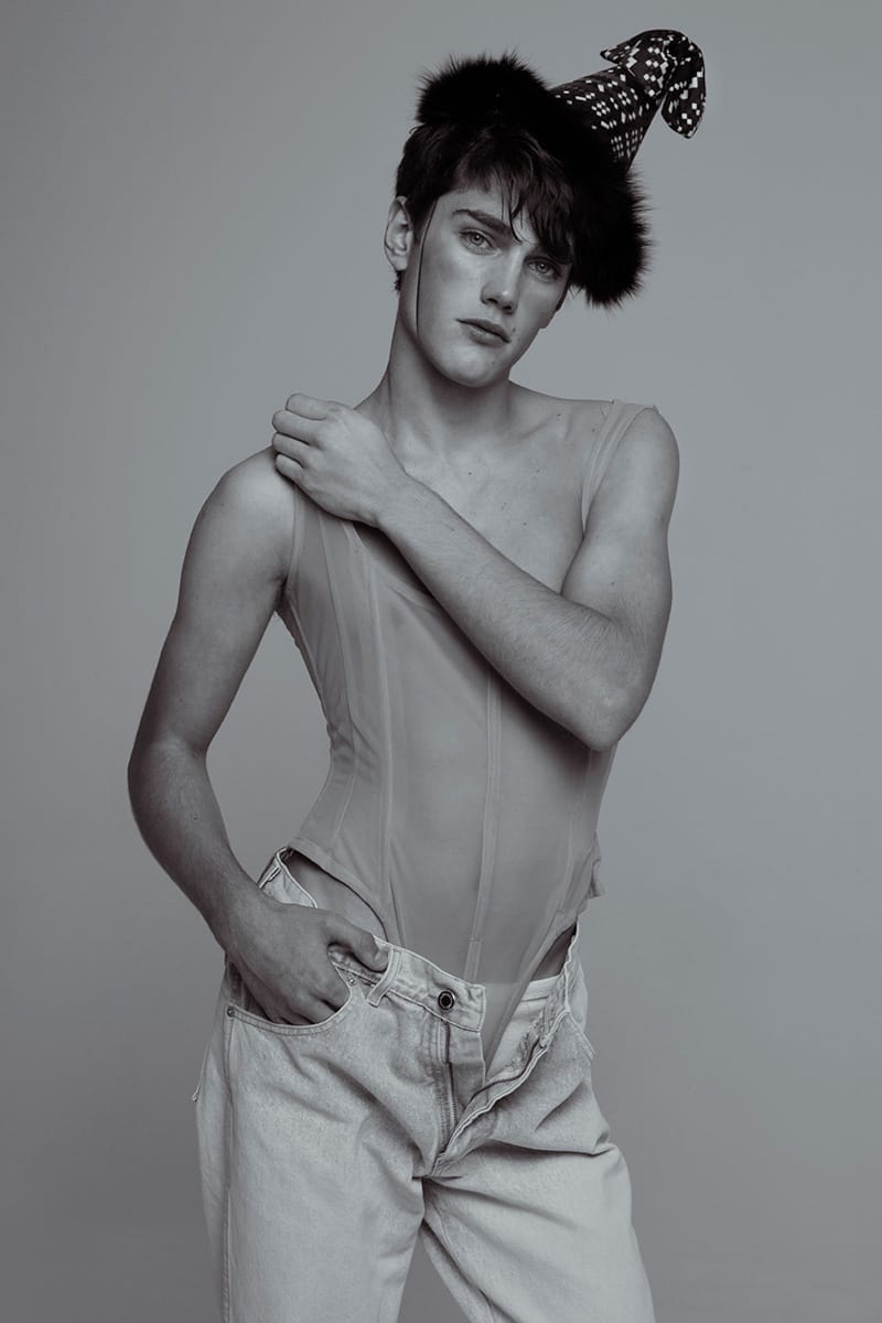 “Gino Pascualini at Sun Models, Goran Barisic at Civiles, and Gian Franco at Universe Management shot by Federico Fernández and styled by Joaquín Díaz with pieces from Florencia Tellado, Sol Pardo, El Vestidor, Alfín Varón and Ejercito de Salvación, in exclusive for Fucking Young! Online.