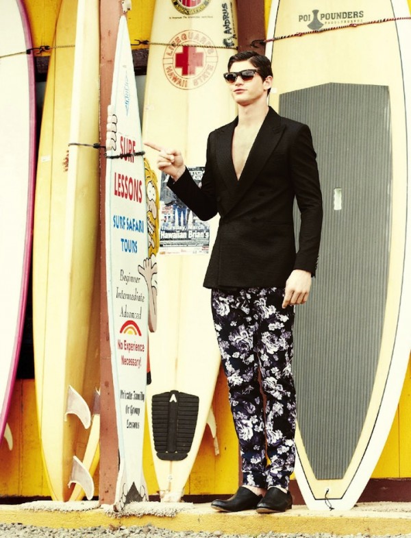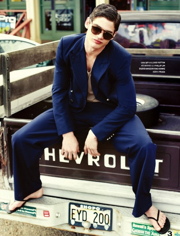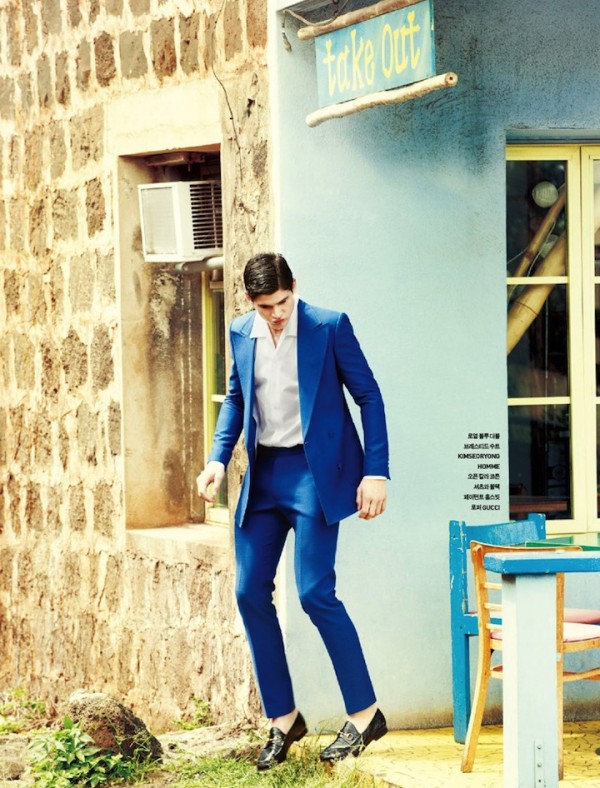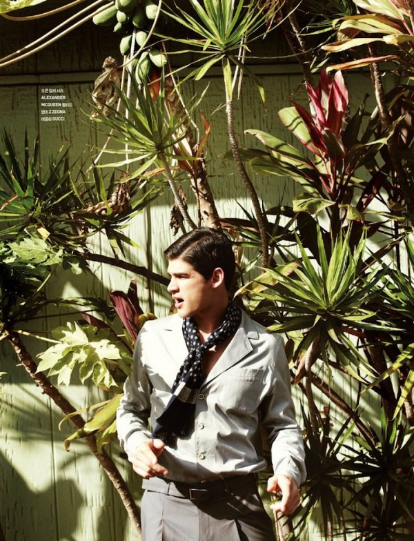 High Energy–Landing on the pages of GQ Style Korea’s latest issue for a solo spread, Re:Quest model Ryan Bertroche is in a cheerful mood. Captured by photographer Yong Bin Choi in a natural daylight, Ryan easily alternates eccentric eveningwear designs with more casual and relaxed suggestions, selected by stylist Jee Young Kan from the spring collections of prestigious labels such as Louis Vuitton, Lanvin, Bottega Veneta and others. Matching shorts with a long-sleeved shirt and a silk tie, or wearing flip-flops with a two-piece tailored suit, Ryan proves an almost irreverent approach to dressing. / Grooming by Jee Hyun Lee. Courtesy of – thefashionisto.com