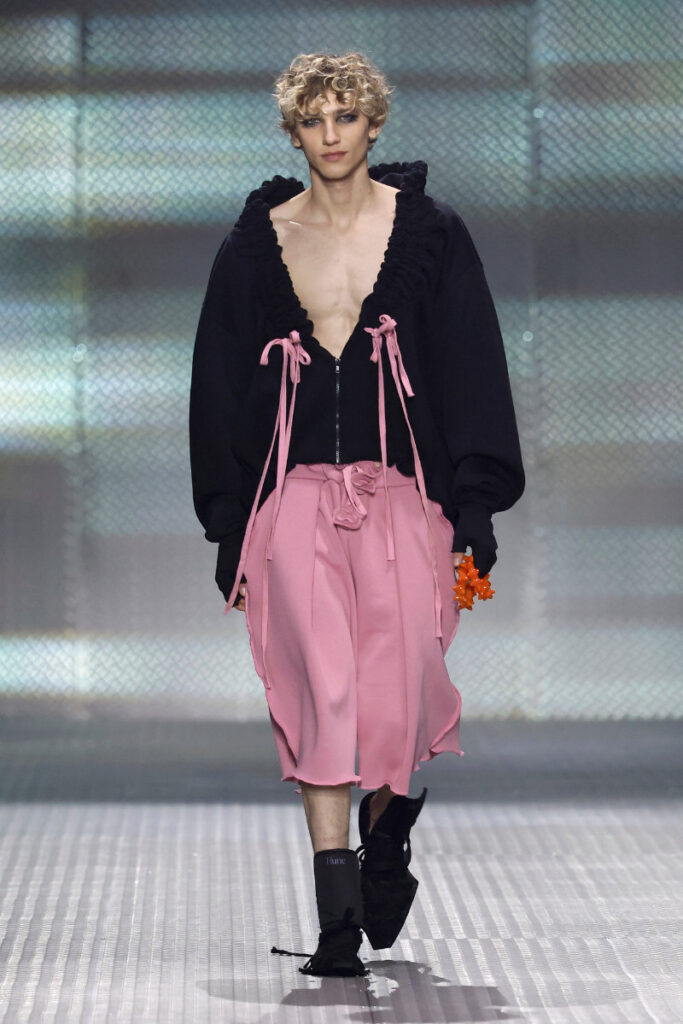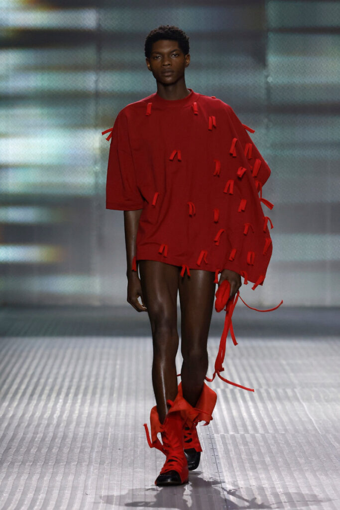 The show was frantic, eccentric, and wildly character‑coded, as if the models had been plucked straight out of a telenovela chase scene and dropped onto the catwalk mid‑argument. Clothes swung, silhouettes exaggerated, and personalities burst through every seam. It was fashion theater — messy, expressive, and unapologetically alive.
