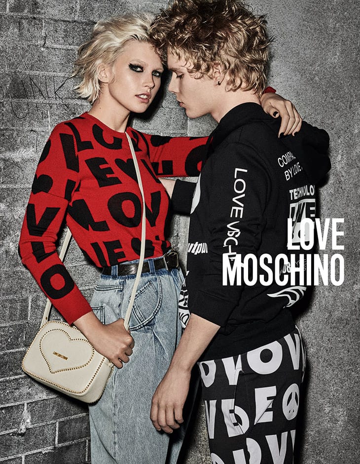 “The handsome Aaron Sirainen stars in Love Moschino‘s Fall Winter 2019.20 advertising campaign captured by fashion photographer Giampaolo Sgura. Beauty is work of hair stylist Franco Gobbi, makeup artist Jessica Nedza, and manicurist Annarel Innocente. In charge of casting direction was SimoBart Casting. For the campaign Aaron was joined by Jana Julius.” – Malemodelscene.net