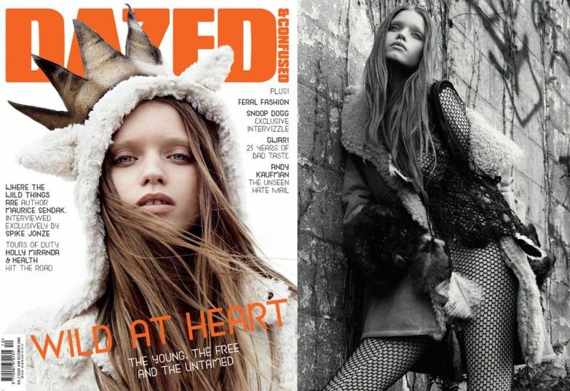 ‘Wild at heart. the young, the free and the untamed’ proclaims the December 2009 cover of Dazed & Confused magazine [subscribe]. And the images of this cover shoot by Daniel Jackson stay true to that wild spirit with creative styling by Karen Langley. The adorable model is Abbey Lee Kershaw. Courtesy of – fashiontography