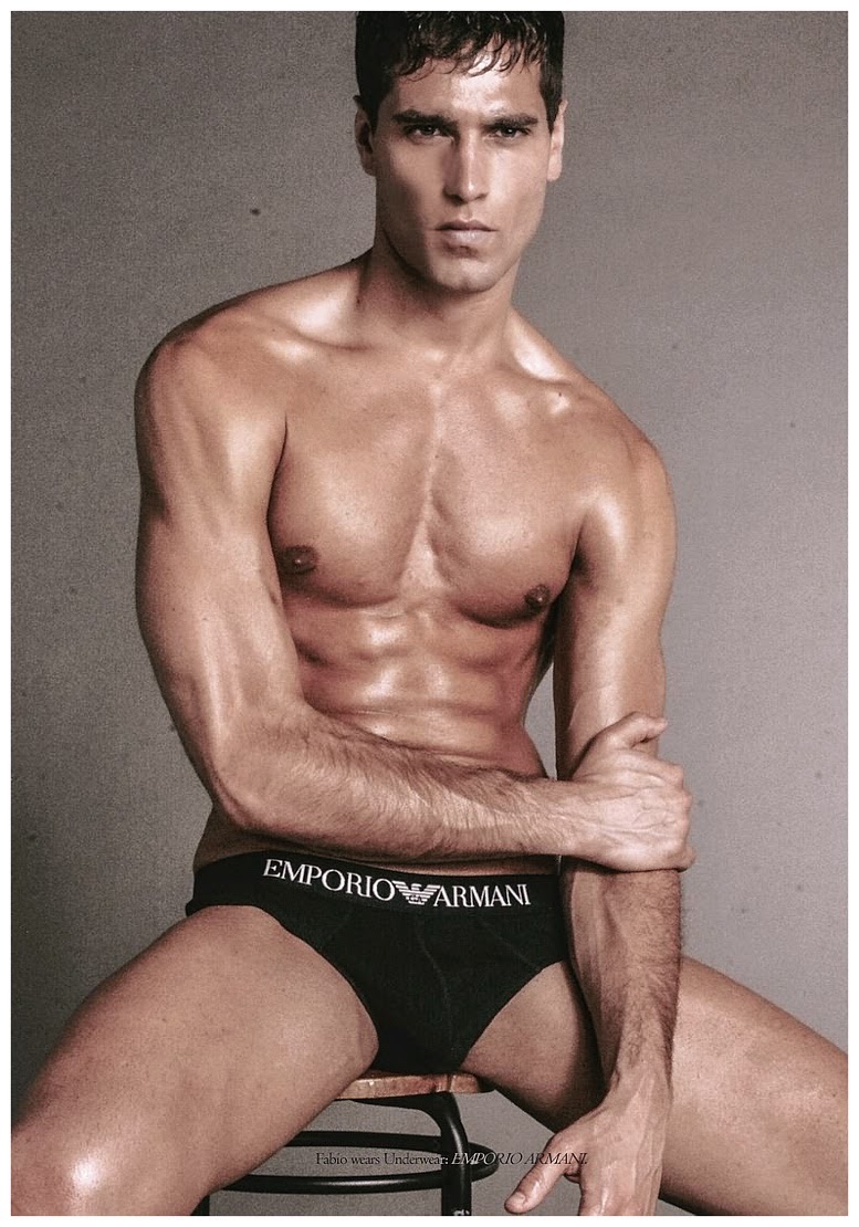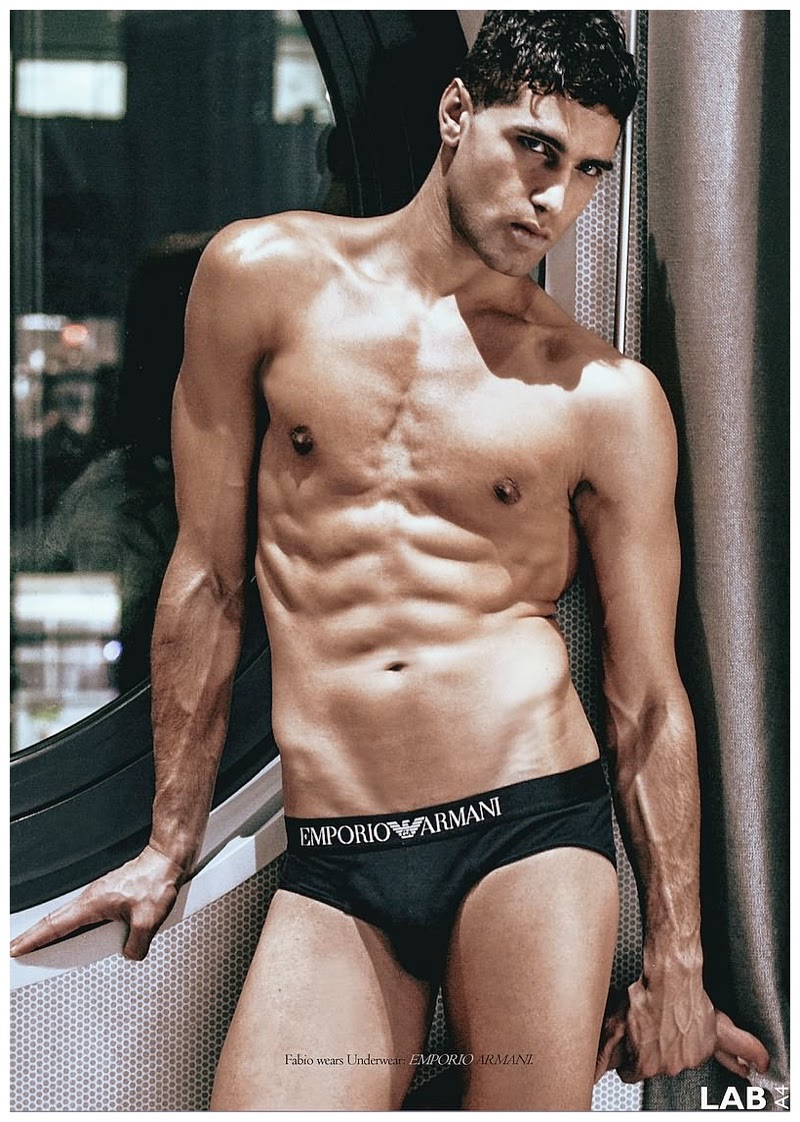 “Following a cover shoot for David magazine, Italian model Fabio Mancini stars in an editorial for Lab A4. Hitting the photo studio with photographer Horacio Hamlet, this is not the first time Fabio has donned Emporio Armani’s iconic briefs. Styled by Cosme Flores, Fabio also dons sartorial pieces from labels that include Calvin Klein Collection, Topman and Salvatore Ferragamo.” – TheFashionisto.com