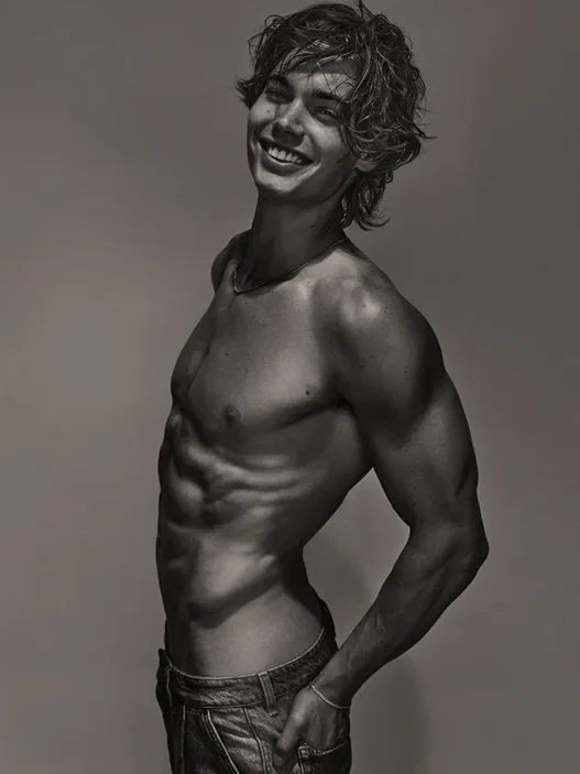 The new fifth issue of Re-bel magazine features models Rokas Zilionis, Arran Sly, Wilson Steve, Tomek Szalanski, Wilfred Lytton, and John Cherkas in the cover story ‘Absurd Encounters’, photographed by Brett Lloyd and styled by John McCarty. Courtesy of – Homotography