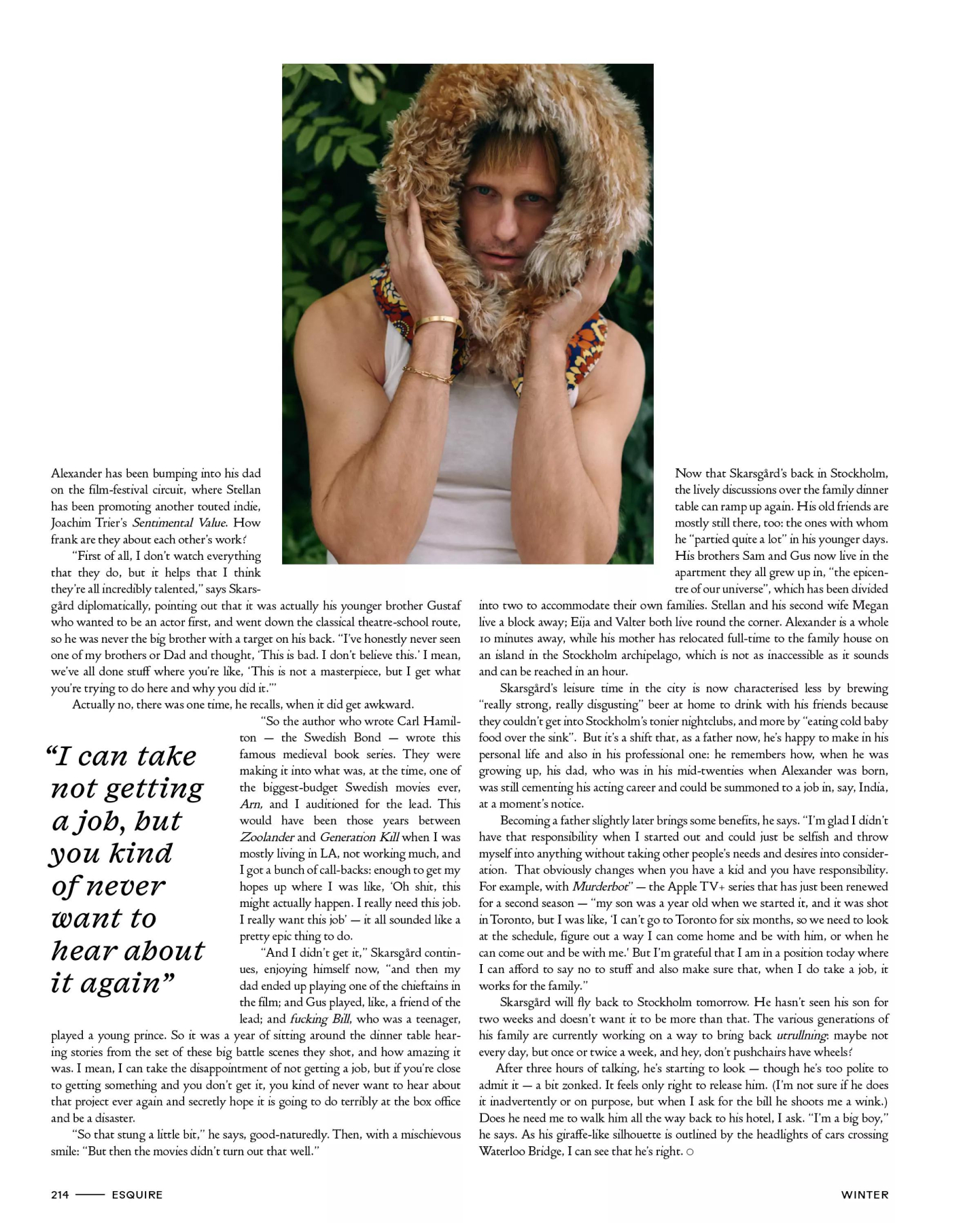 Swede actor turned occasional model Alexander Skarsgård is shot by Ben Parks for the current issue of Esquire UK!