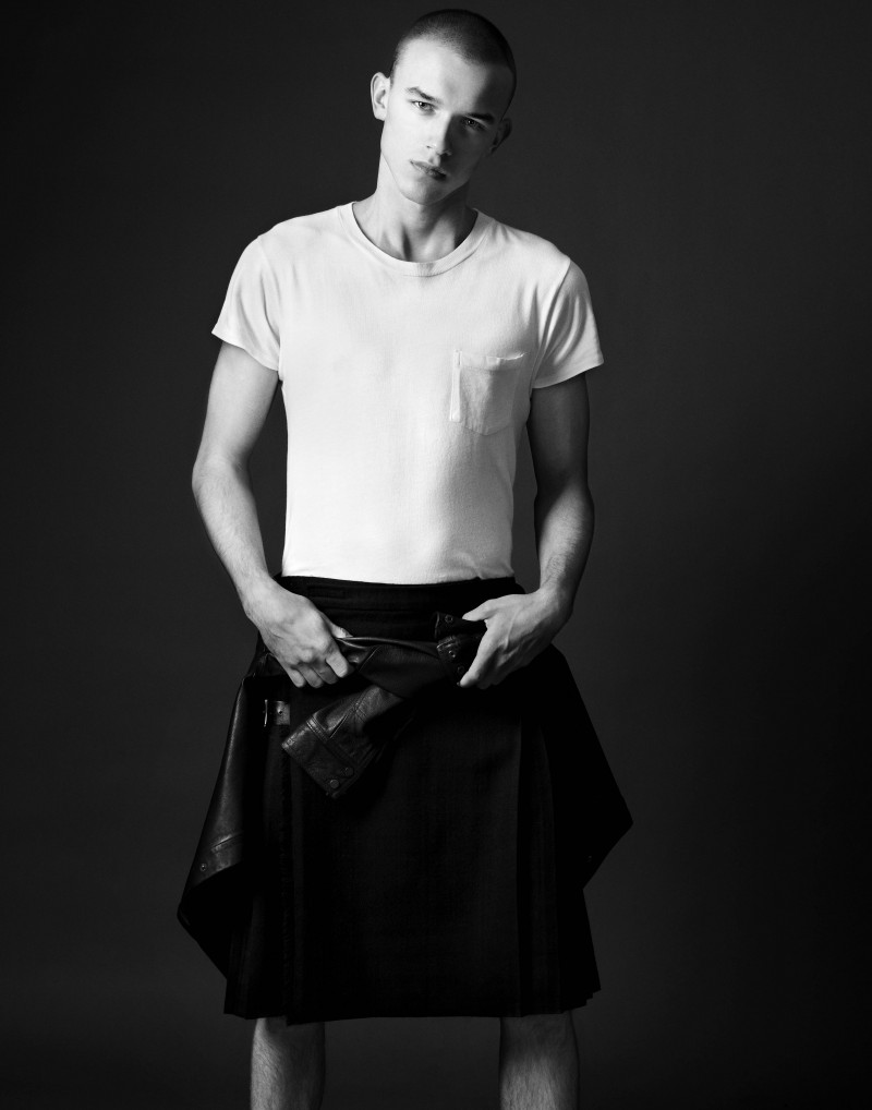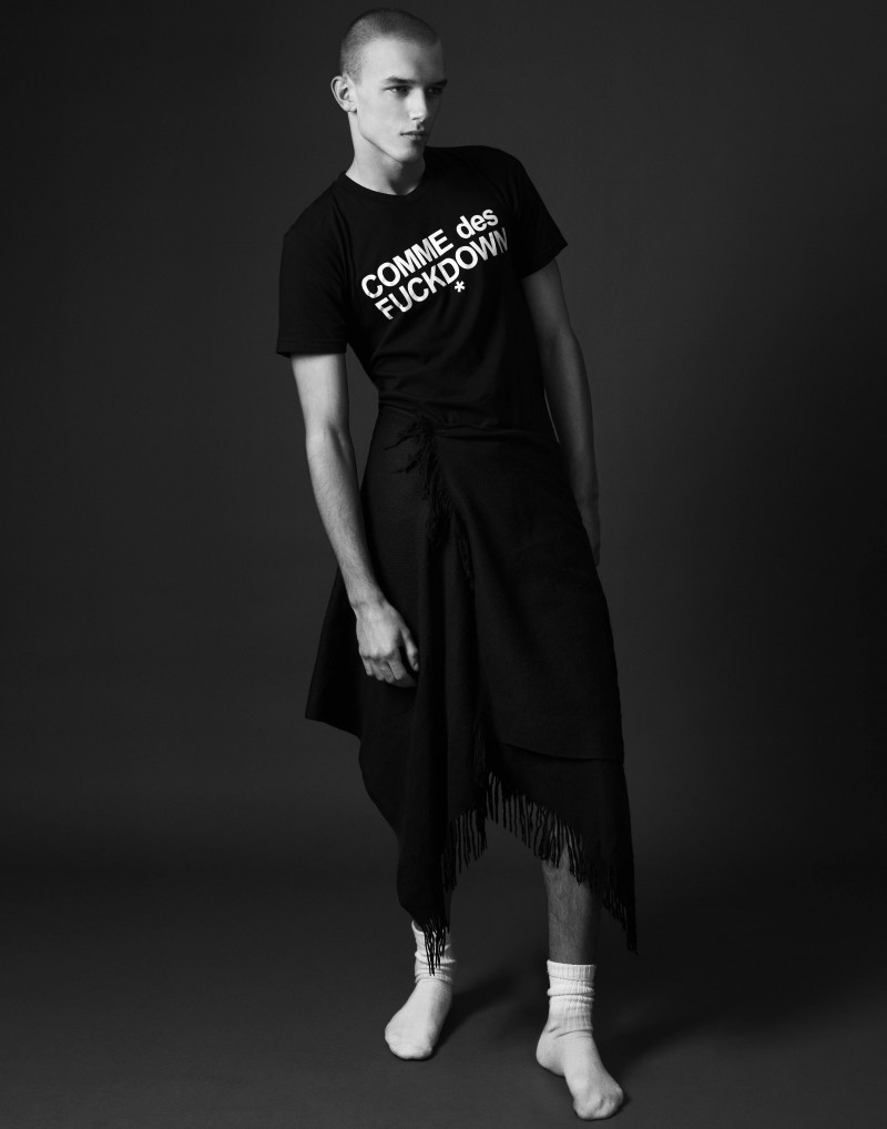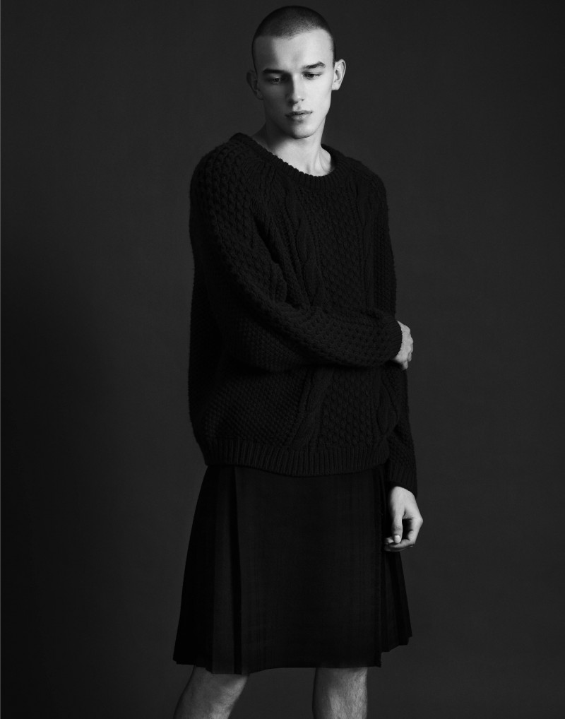 Meanwhile in London–AS Management model Adam Kaszewski connects with photographer James Perry for a black & white photo session. Captured in a studio in London, Adam poses for laid-back images, dressed in a wardrobe inspired by the comfort of sportswear, reworked in a more fashionable and unexpected way. Courtesy of thefashionisto.com