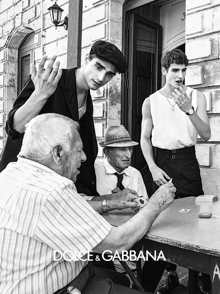 “Supermodels Adam Senn, Evandro Soldati, Noah Mills, Amerigo Valenti, and Kane Roberts star in Dolce & Gabbana‘s Spring Summer 2020 campaign captured by photographer Salvo Alibrio.” – Malemodelscene.net