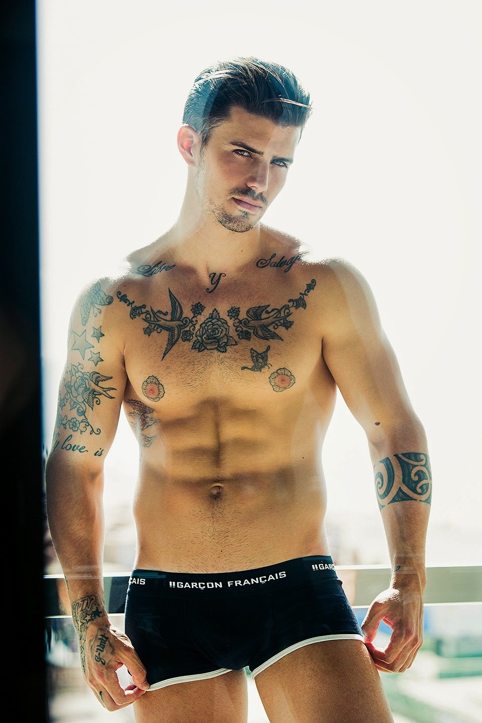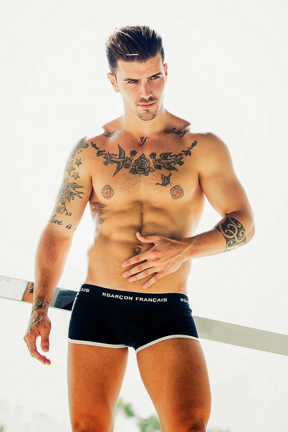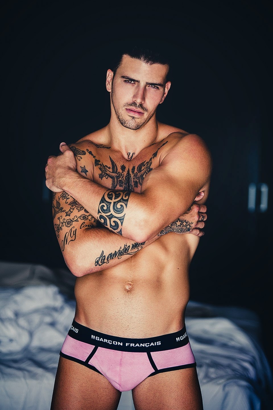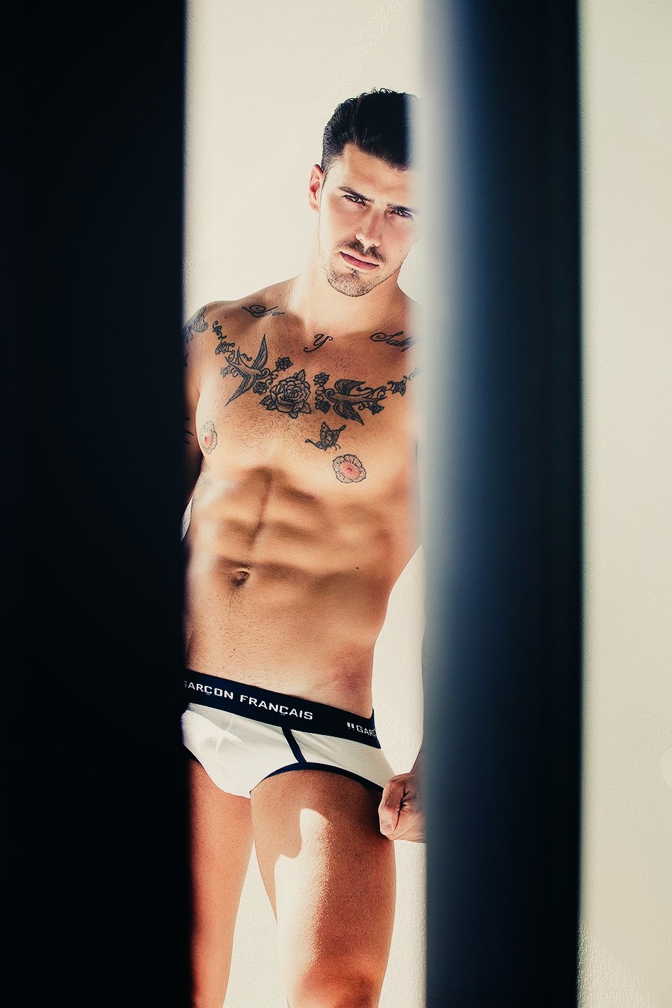 Model Adan González is photographed by Adrian C. Martin in Maspalomas, Gran Canaria, Canary Islands, featuring Garçon Français underwear. Courtesy of – Homotography