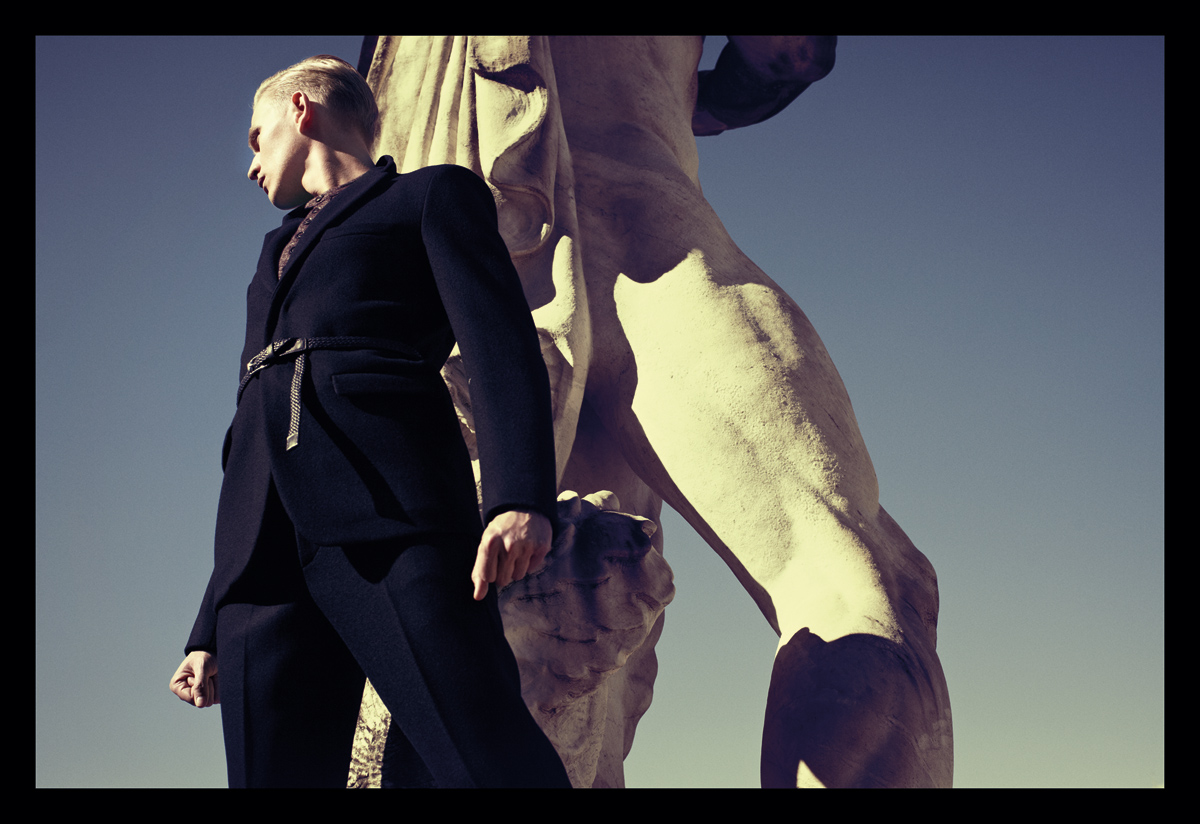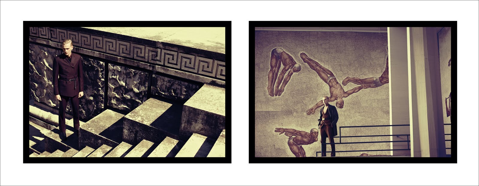 Gerhard Friedl is shot by Bruno Van Mossevelde in this shoot featuring architectural designs mixed with powerful imagery and art from civilizations long passed. Courtesy of – hommemodel.blogspot.com