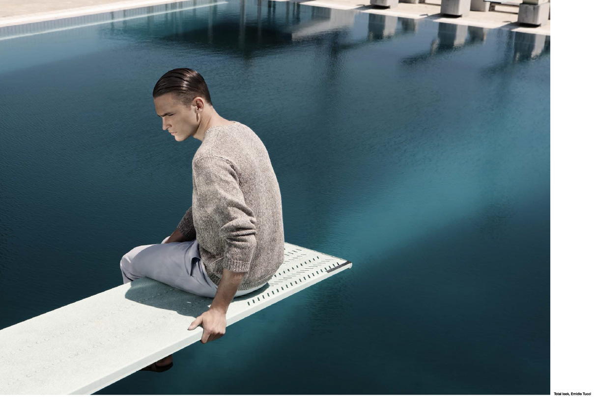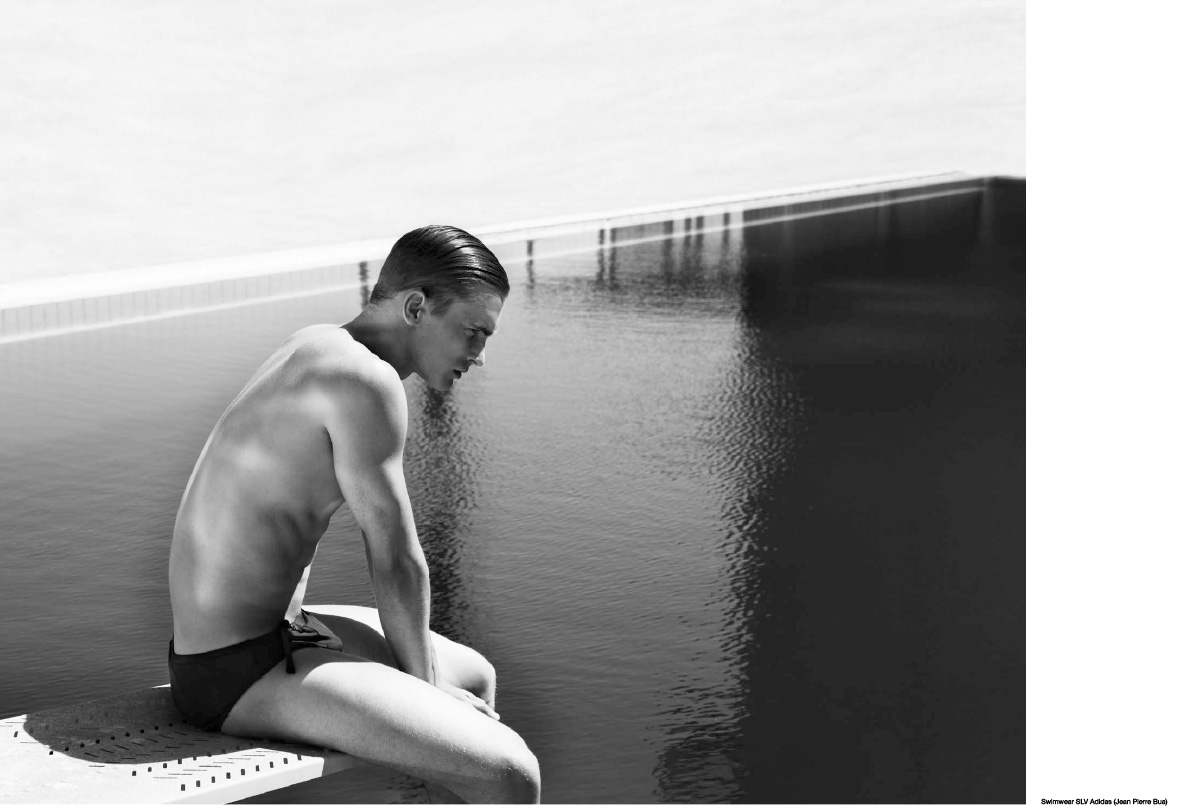 Dashing Divers–For its debut issue, Axel Magazine pays tribute to the Summer 2012 Olympics with a splash-worthy editorial titled, “Olympic Heroes,” featuring Sight models Alejandro Rodríguez, Ferran Calderon, Knut Roertveit, and Graham Winfield. In the lens of photographer YOYE, the models embrace the strength of an Olympian, juxtaposed against the crisp, geometric lines of the swimming pool. Outfitted by Esau Yori in labels such as Dries van Noten, Dior Homme, and Marc Jacobs, the poised men are sleek and pristine above the shimmering reflection of the pool. / Grooming by Inma Cifre. Courtesy of – thefashionisto.com