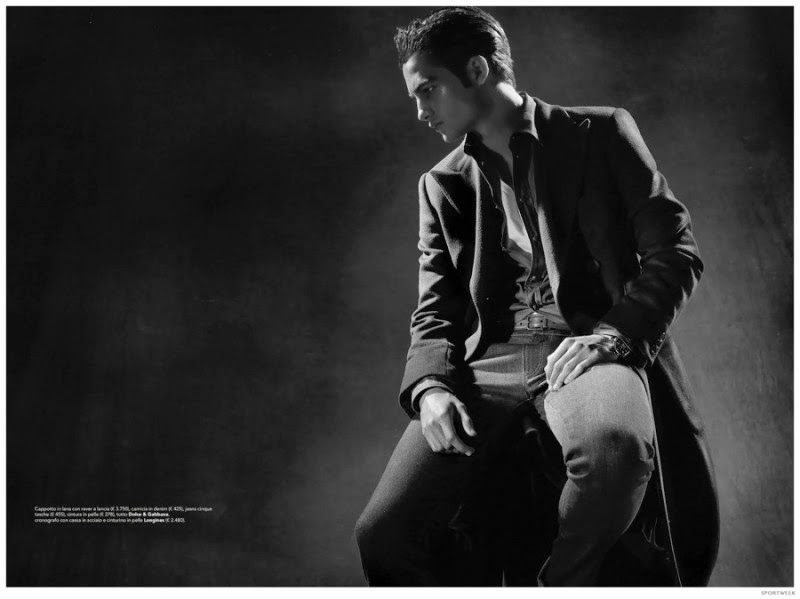 Wearing menswear from Emporio Armani, Saint Laurent, Dolce & Gabbana and other luxurious labels, model Aleksandar Rusic graces the pages of the latest Sportweek. Shot for the Italian magazine by Giovanni Squatriti, Aleksandar is groomed by Franceschino Chessa. Courtesy of – thefashionisto.com