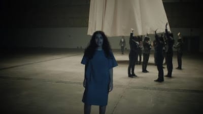 The treatment in her new video finds her thrust into adulthood where director Alan Masferrer, precisely assimilates extensive choreography used to depict the process of growing up. Cara is first seen holding a bouquet of flowers on a tarp like thing. She’s wearing an oversized T and walks through a gathering of earthlings in suits playing child-like hand-clapping games.