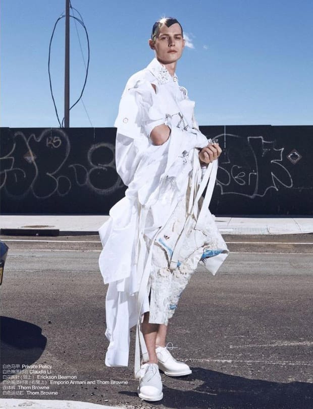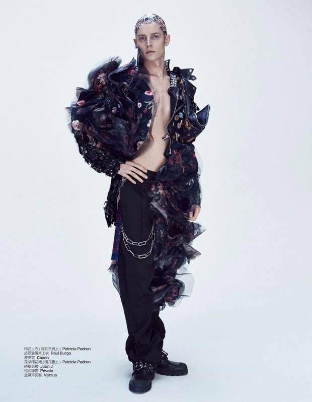 “Harper’s Bazaar China enlists fashion photographer Shxpir to capture Avant-garde go! story for their May 2017 edition. Stars of the session are top models Alessio Pozzi, Ben Allen, Daan van der Deen, Janis Ancens, Julian Schneyder, Miles McMillan, and Sol Goss. In charge of styling was Daniel Edley, with beauty from hair stylist Brent Lawler, and makeup artist Carolina Dali.” –