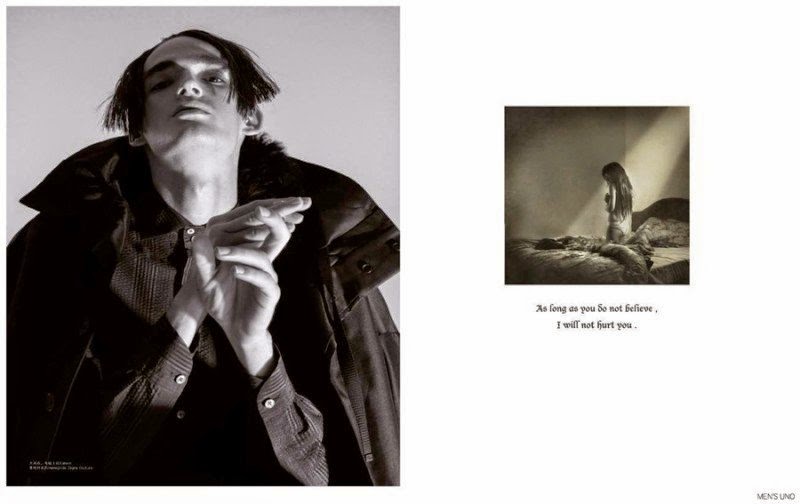 Early Winter-Photographed by Steeve Beckouet, models Alexander Beck, Adrien Lesueur and Florentin Glemarec breathe life into a dark narrative, captured for the latest edition of Men’s Uno International. Sulking and posing in dramatic silhouettes from the fall-winter 2014 collections, the mesmerizing trio are styled by Coke Ho. Courtesy of – thefashionisto.com