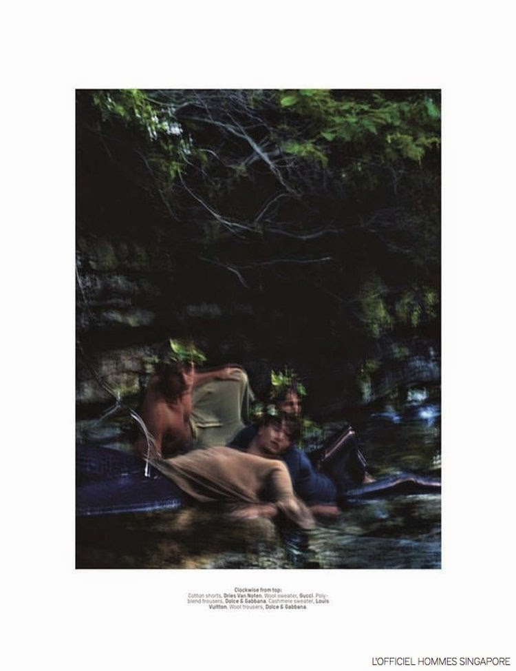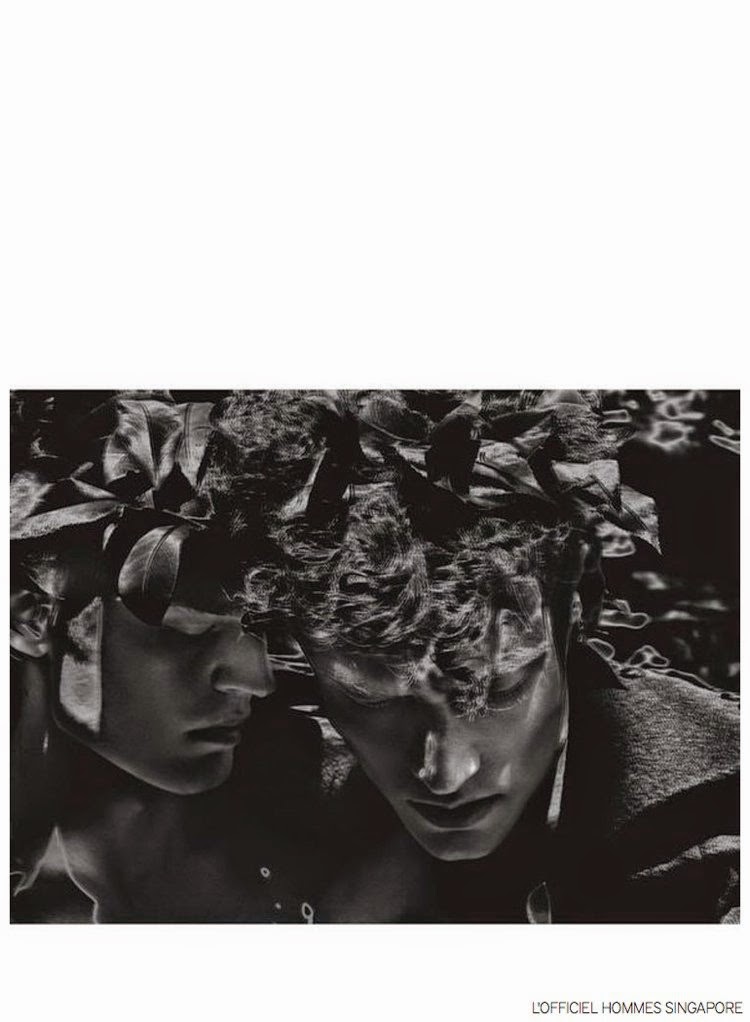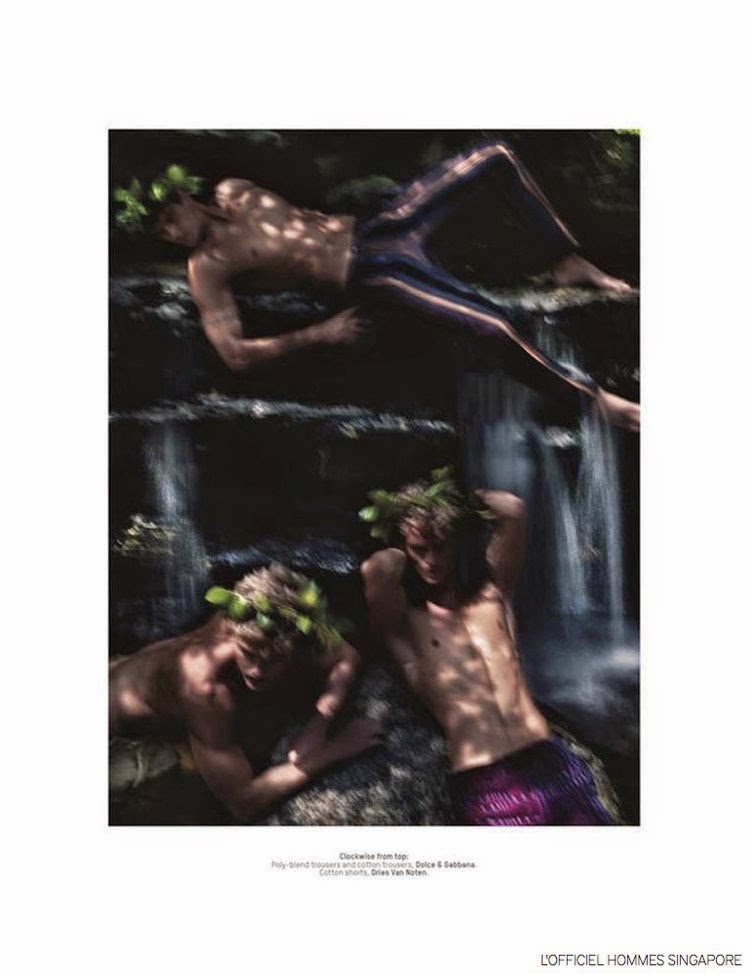 Mystic Fall-L’Officiel Hommes Singapore channels Greek mythology for its fall 2014 issue, which includes a dreamy story lensed by photographers Chuando & Frey. Featuring models Alexander Johansson, Brad Alphonso, Taylor Ashmore and William Roy, the editorial features minimal but standout fall pieces from the likes of Calvin Klein Collection, styled by Jack Wang and Jumius Wong. / Grooming by Riad Azar. Courtesy of – thefashionisto.com
