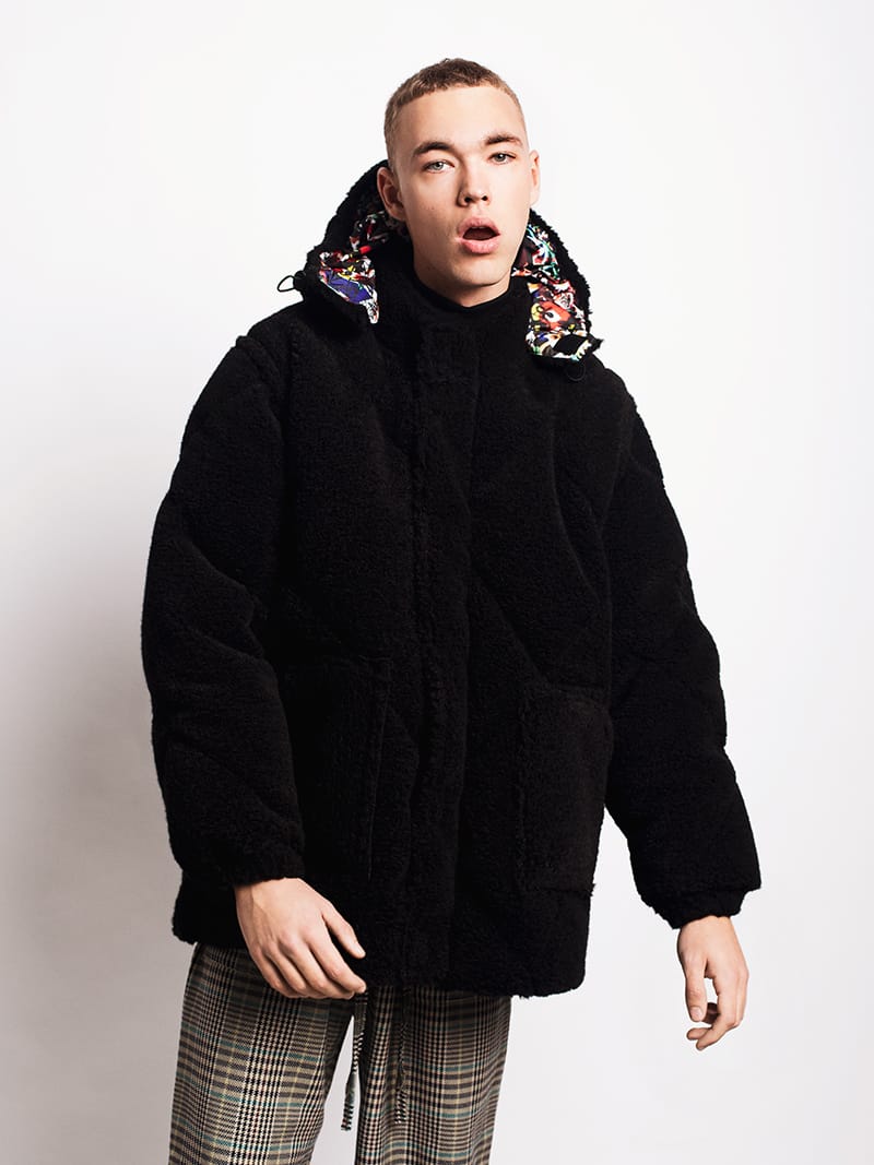 This collection mixes opposites, from the ” underground” with ethnical features, to the Hip-Hop with African influences. The classic of an antique generation contrasts the new generation’s streetwear, the traditional costumes to street art, creating contemporary and “retro” silhouettes. The details emerge from the idea that the garments “go from one person to another” adjusting to the new body, creating new shapes and details. The walls with “tags” and layers of torn posters are the motto for the fabric manipulation and prints of the collection, where these talk about the suburban culture. One of the tags comes from the Portuguese rapper Sam the Kid “Eu não quero ser o melhor, eu melhoro a fazer de mim” which means I don’t want to be the best, I get better at being myself.” – FY Magazine.es