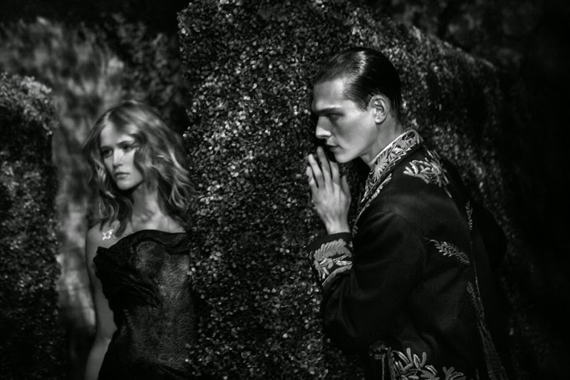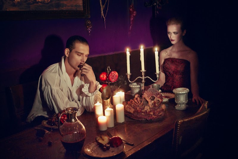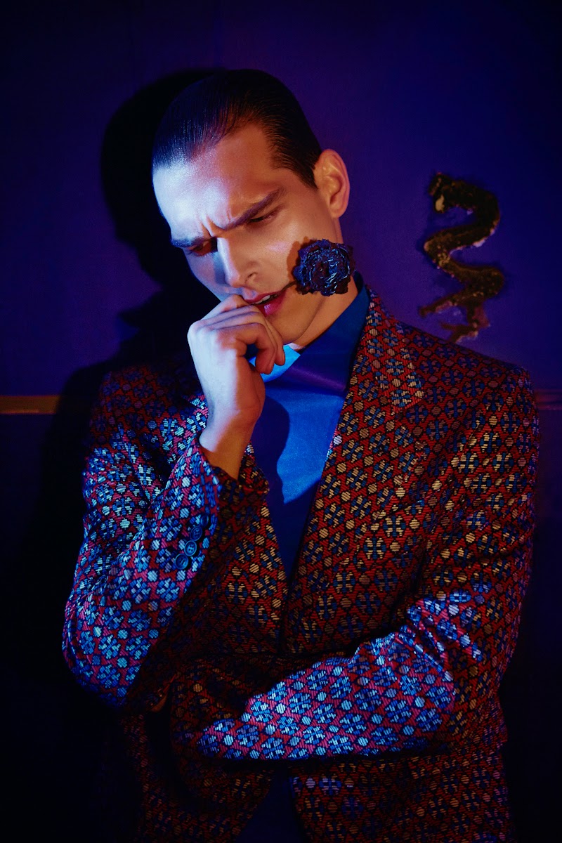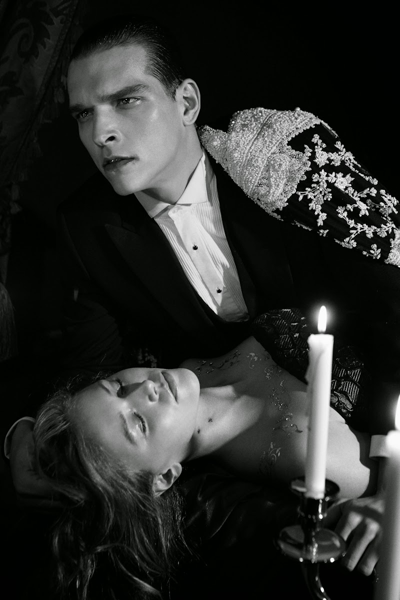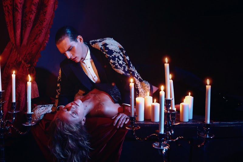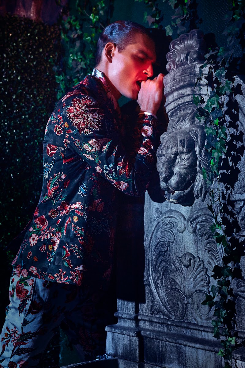 A Night With a Vampire–Photographer Michelle Du Xuan reunites with Brazilian model Alexandre Cunha (New Madison) after their shoot last year for L’Officiel Hommes China. Inspired by Bram Stroker’s Dracula, Du Xuan connects with stylist Fleur Huynh Evans for a dark undertaking. Clad in embellished summer fashions from Dries Van Noten, Lanvin and other luxury labels, Alexandre is transformed into the dangerous antagonist for a visually stimulating story, which also features model Raphaelle D. (New Madison). / Hair by Mike Desir. Makeup by Dariia Day. Courtesy of – thefashionisto.com