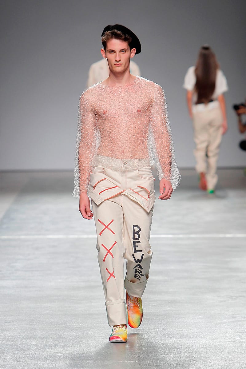 “Alexandre Pereira presented his SS18 “Tupah” collection at #SangueNovo during ModaLisboa. Influenced by the works of Jean Michel Basquiat and José Romussi, the collection reflects on “what mothers think when they do not get back the borrowed tupperware”.” – FY Magazine.es