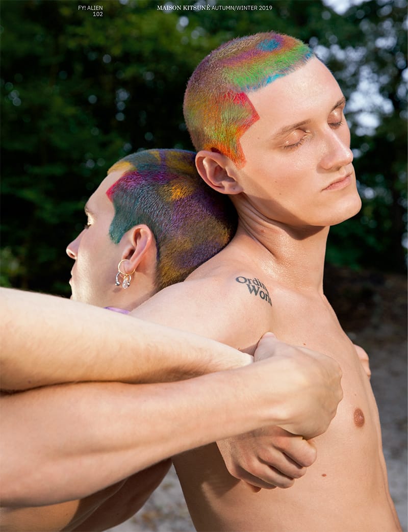 “Kobe at Rock Men and Jean-Noel at Metropolitan shot by Valentin Fabre and styled by Yumna Mirza with FW19-20 pieces from Maison Kitsune, for the FW19-20 “ALIEN” issue of Fucking Young!