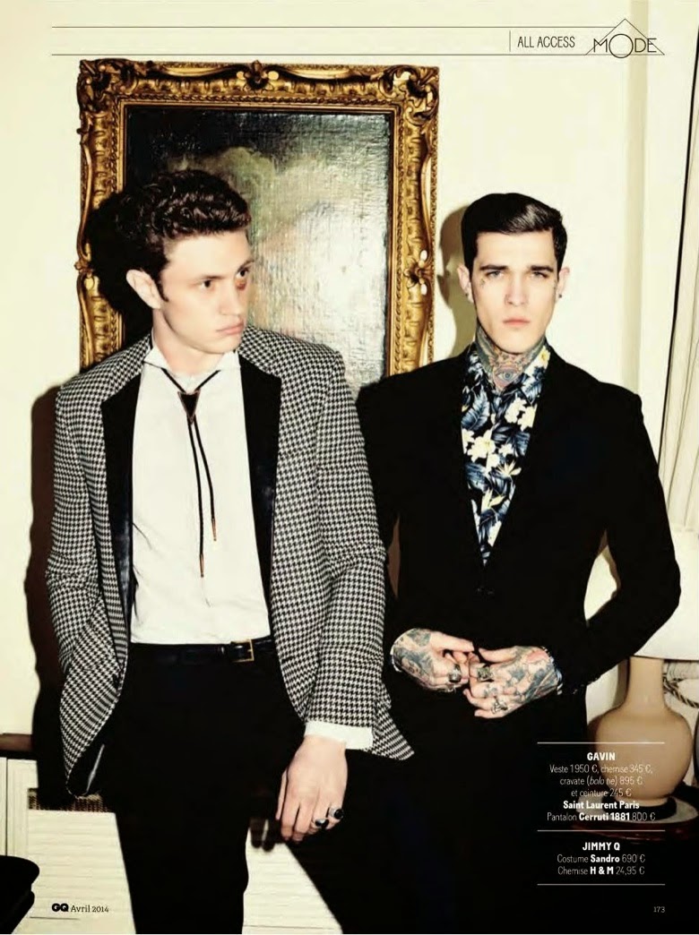 ll Access–Photographed by Julian Broad for the April edition of GQ France, models Jimmy Quaintance and Gavin Jones embrace a retro rock ‘n’ roll style for an inspiring spread styled by Laetitia Paul. Captured on the road in the role of in-demand musicians, the boys sport cool looks from labels such as Sandro and Saint Laurent by Hedi Slimane. Paying attention to tailoring, sharp cuts and fine lines are at the center of the story with great jackets and smart trousers. Courtesy of – thefashionisto.com