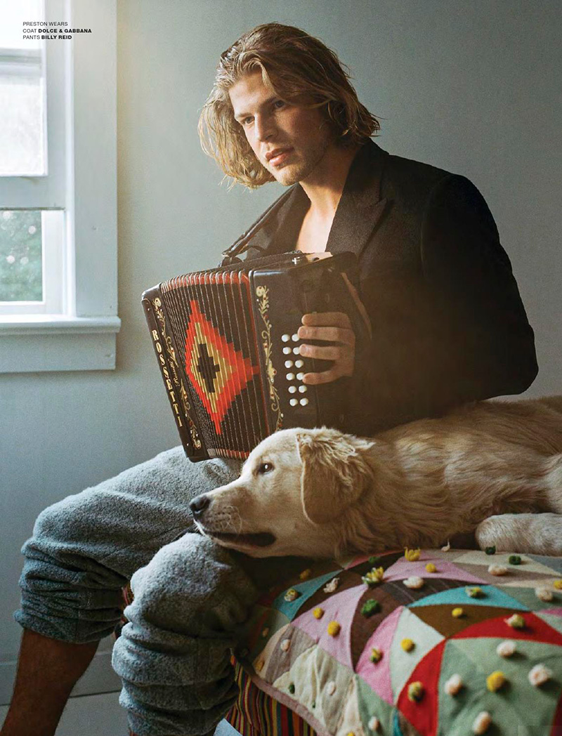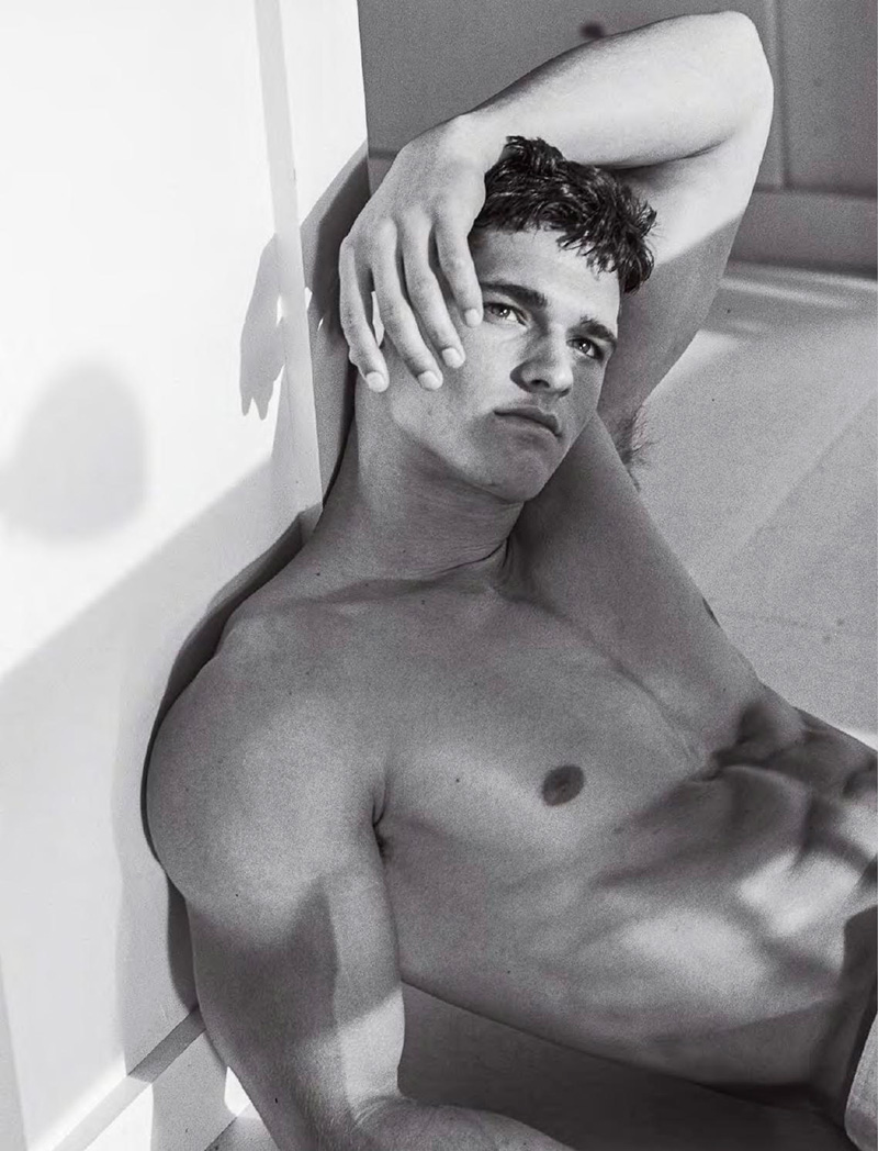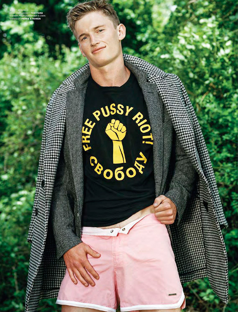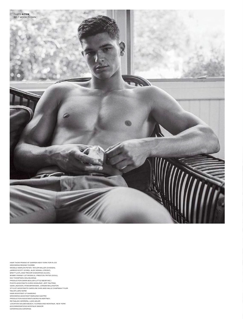 “Alex Sewall, Bobby Penney, Brett Listl, Jarrod Scott, Marlon Peter, Nic Thompson, Preston Trites, Taylor Miller and Trevor Signorino shot by Bruce Weber and styled by Deborah Watson, for the latest issue of VMan magazine.” – Malemodelscene.net