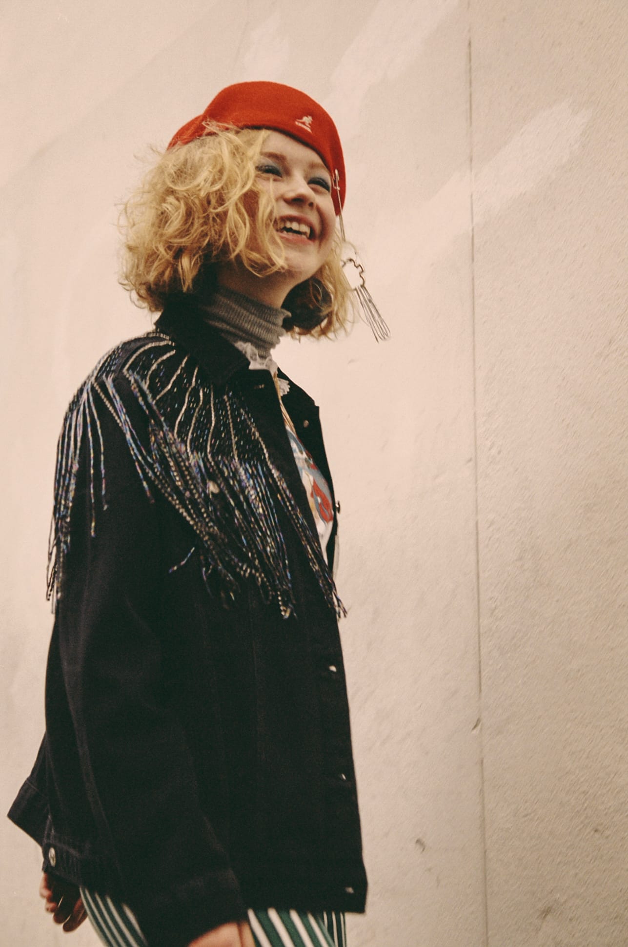 T-shirt MIMI WADE, jacket and trousers TOPSHOP, hat NICOPANDA, jewellery MILLIE’S OWN