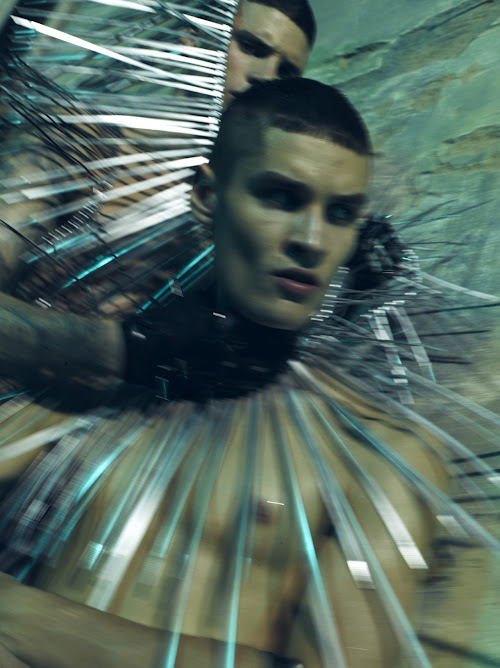 In celebration of his debut exhibition ‘DALSTON SÙPERNOVÆ’, Alùn Davies collaborated with photographer Thomas Cooksey and stylist Kim Howells on this fantastic shoot featuring models Toby Leonard and Jamie Kendrick. The exhibition runs at London’s Dalston Superstore from 25th July to 9th September 2012. Courtesy of homotography.blogspot.com