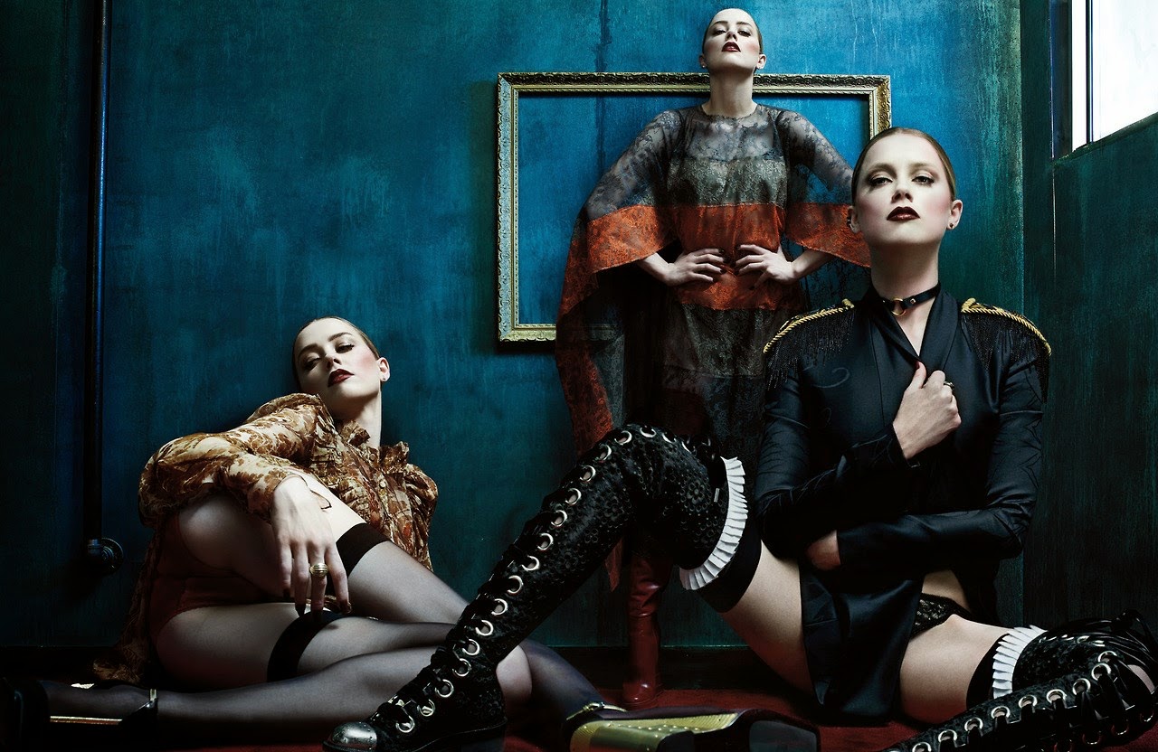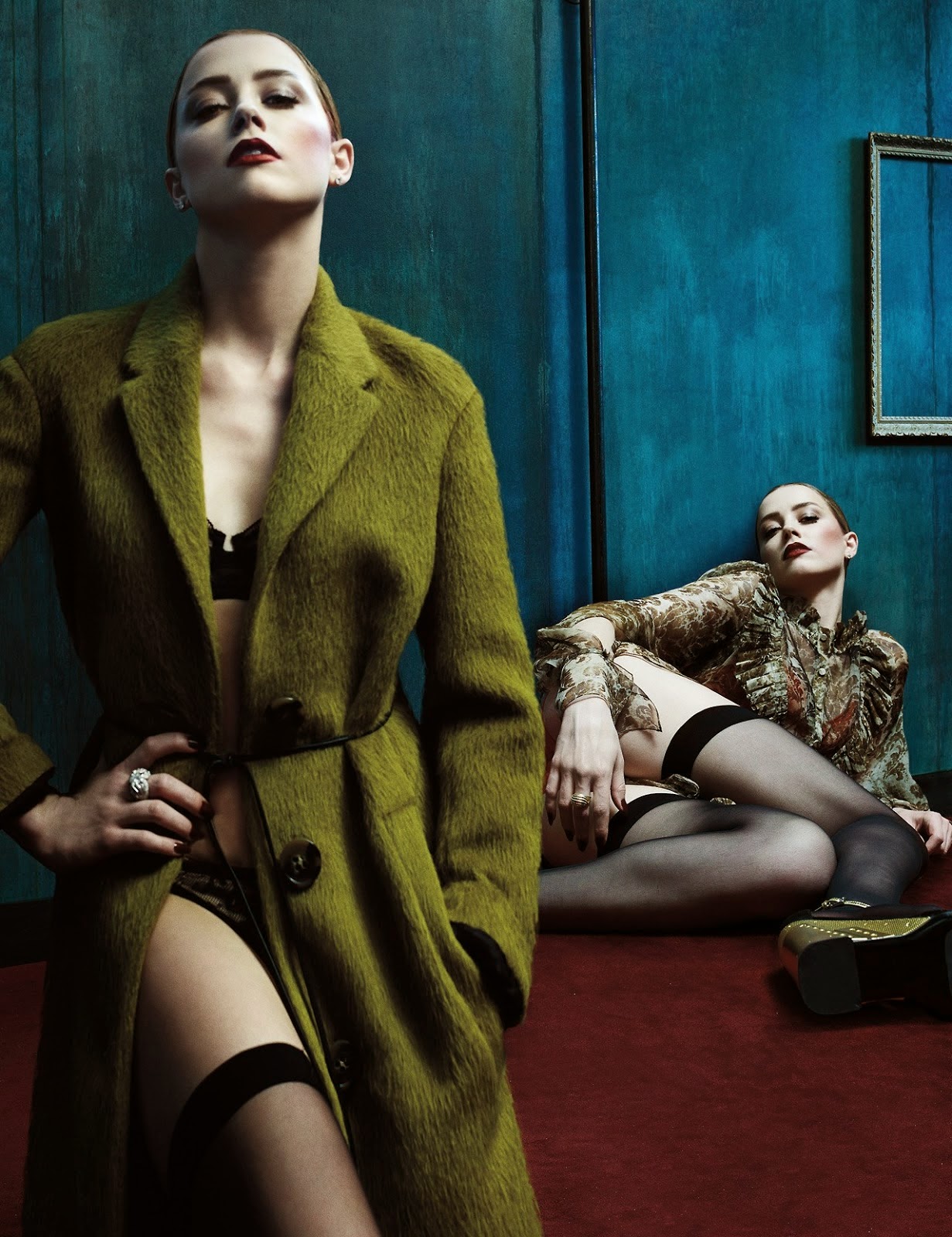 Amber Heard is photographed by Steven Klein and styled by Edward Enninful for the June/July 2014 issue of W magazine, with hair by Orlando Pita, makeup by Kabuki and manicure by Bernadette Thompson.” – Fashiontography.com