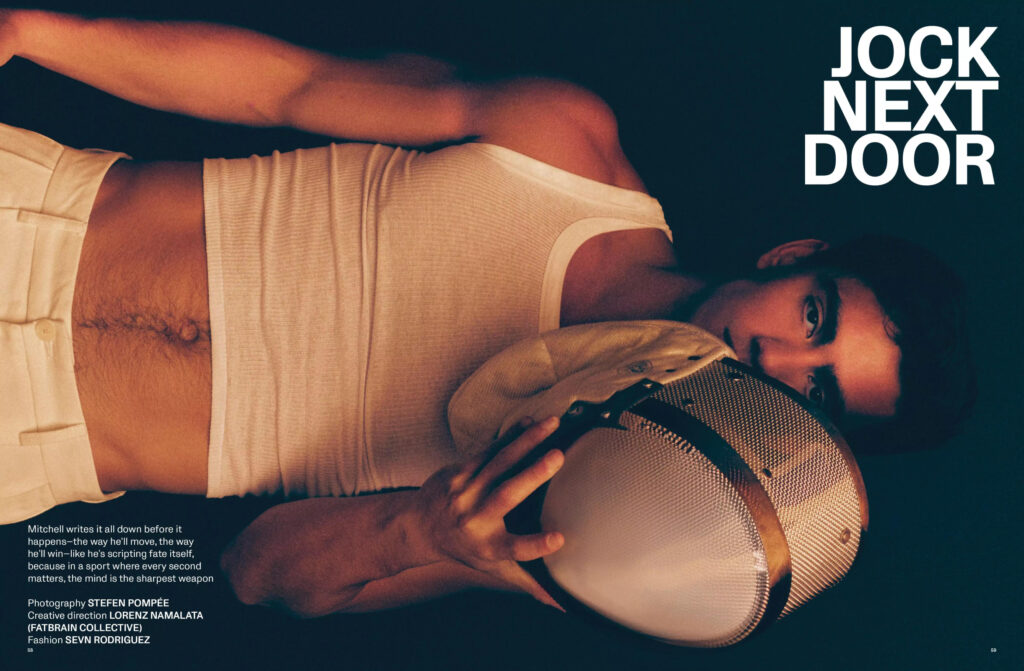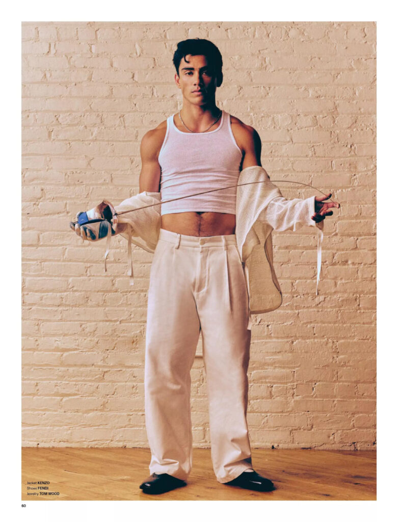 American fencer Mitchell Saron is skin-deep dapperness, walking the concrete jungle streets with effortless poise. A modern gladiator in tailored threads, his presence slices through the city’s static—equal parts athletic grit and editorial polish.