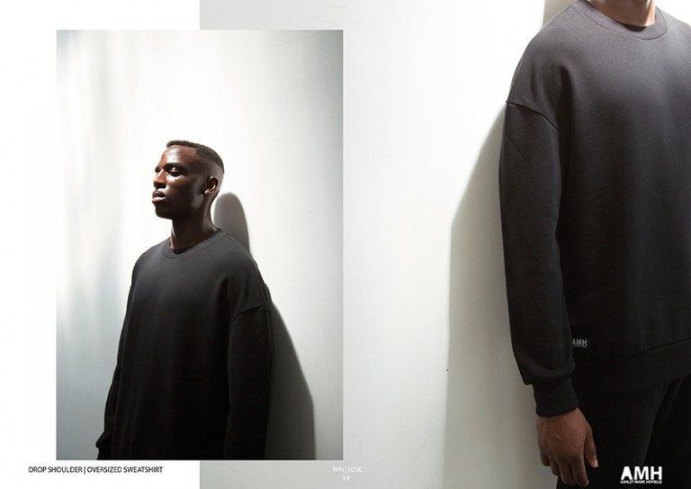 AMH uses 90’s inspired silhouettes including oversized drop shoulder t-shirts, sweatshirts, vest and street-ball shorts. Re-inventing their classic jersey with a sleeker hand feel, AMH also introduce a new softer, structured interlock fabric for their tailored shorts, trousers and a new zip-through funnel neck jacket. Alongside their staple heat seal laser cut applications you will find embroidered badges, new invisible glued seams, framis tape detailing and unique binding tape finishes.