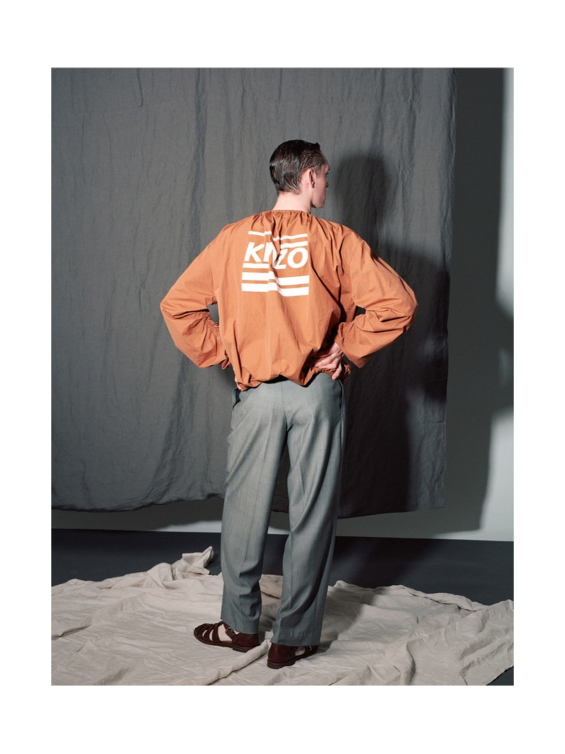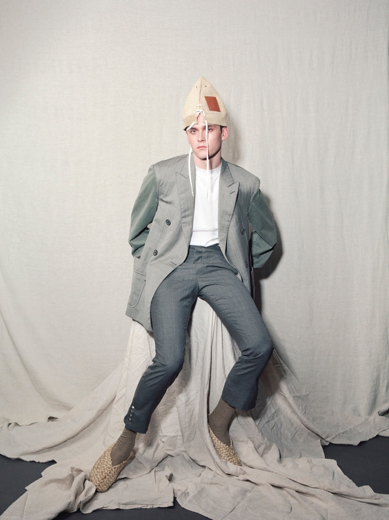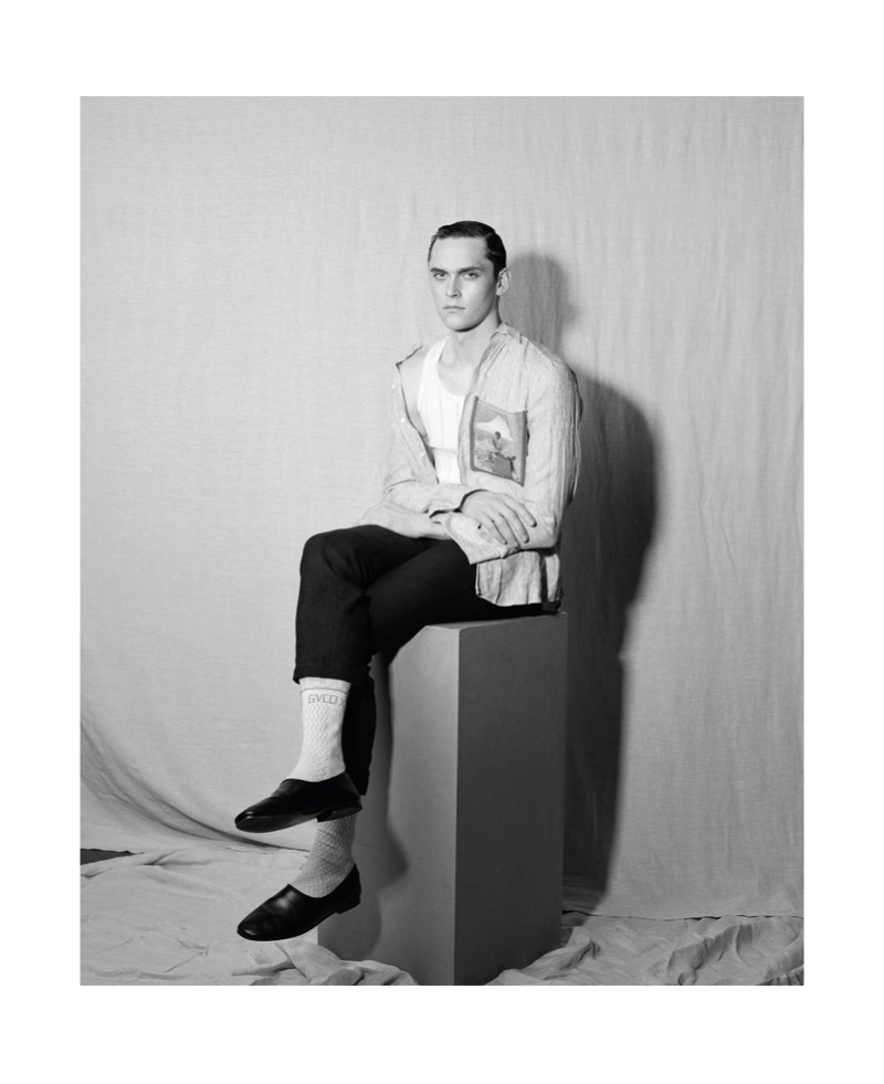 “Anders Hayward connects with photographer Pablo Zamora for a Vanity Fair España feature. Stylist Ana Tover outfits the British model for the shoot. Front and center, Anders sports a wardrobe of brands like Alexander McQueen, Gucci, and Ann Demeulemeester.