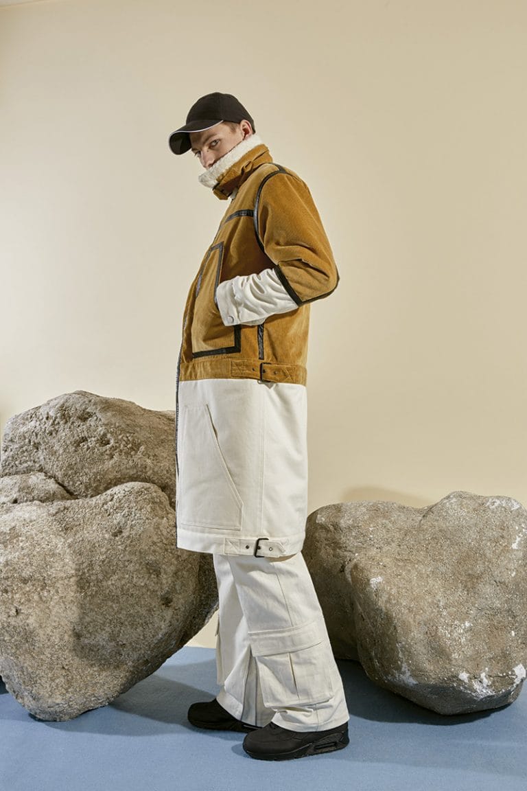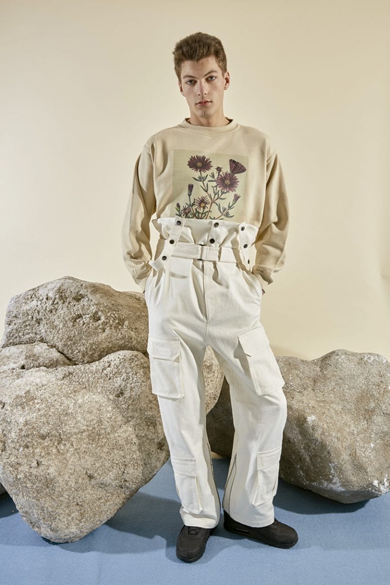 A real return to Andrea Crews’ roots, the collection embraces and celebrates the brand’s values, with upcycling and collaborations : Wool jumpers transformed by DUPERRE students form a series of unique pieces. RE;CODE’s iconic Korean ready-to-wear is reinterpreted in the Parisian studio, as a ZERO WASTE production. The standard rules of fashion are dissected, twisted – the experimental and playful signature of Andrea Crews.” – FY Magazine.es