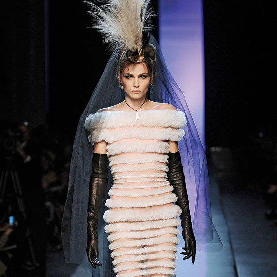 For even a moderately vain female, spending time with Pejic is like losing a race to someone who’s not even running: If he were not a man, he would be the most beautiful woman I have ever seen in the flesh—which, in his case, is flawless and poreless and has an English-rose luster. His mussed blond locks and the rounded width of his cheekbones bring to mind a young Brigitte Bardot. At 19 years old, he is six-foot-one, thin as the stroke of a paintbrush, and wears a women’s size 11 shoe, which he says is hard to find in couture but is sometimes carried at DSW. He is fey but not flamboyant. His only apparent physical imperfection is a pair of moles that hover gracefully over his lip on the right side of his slightly feline face. They are sometimes, albeit rarely, Photoshopped out.