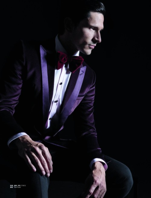 Andres Velencoso Segura alternates between tuxedos and his birthday suit in the April 2011 issue of L’Officiel Hommes China. The story is photographed by Milan Vukmirovic. Courtesy of – Homotography